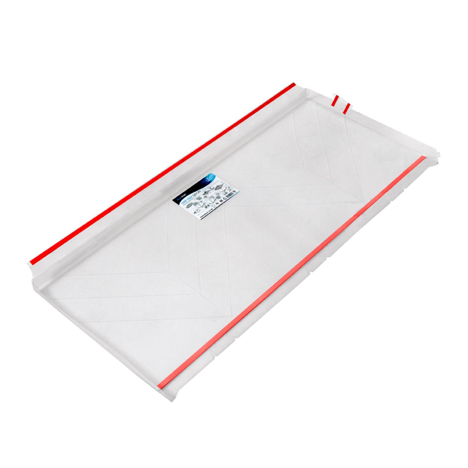 - Se till att tejpen på framkanten sitter ordentligt mot golvet (för att undvika att vatten rinner in under tråget).