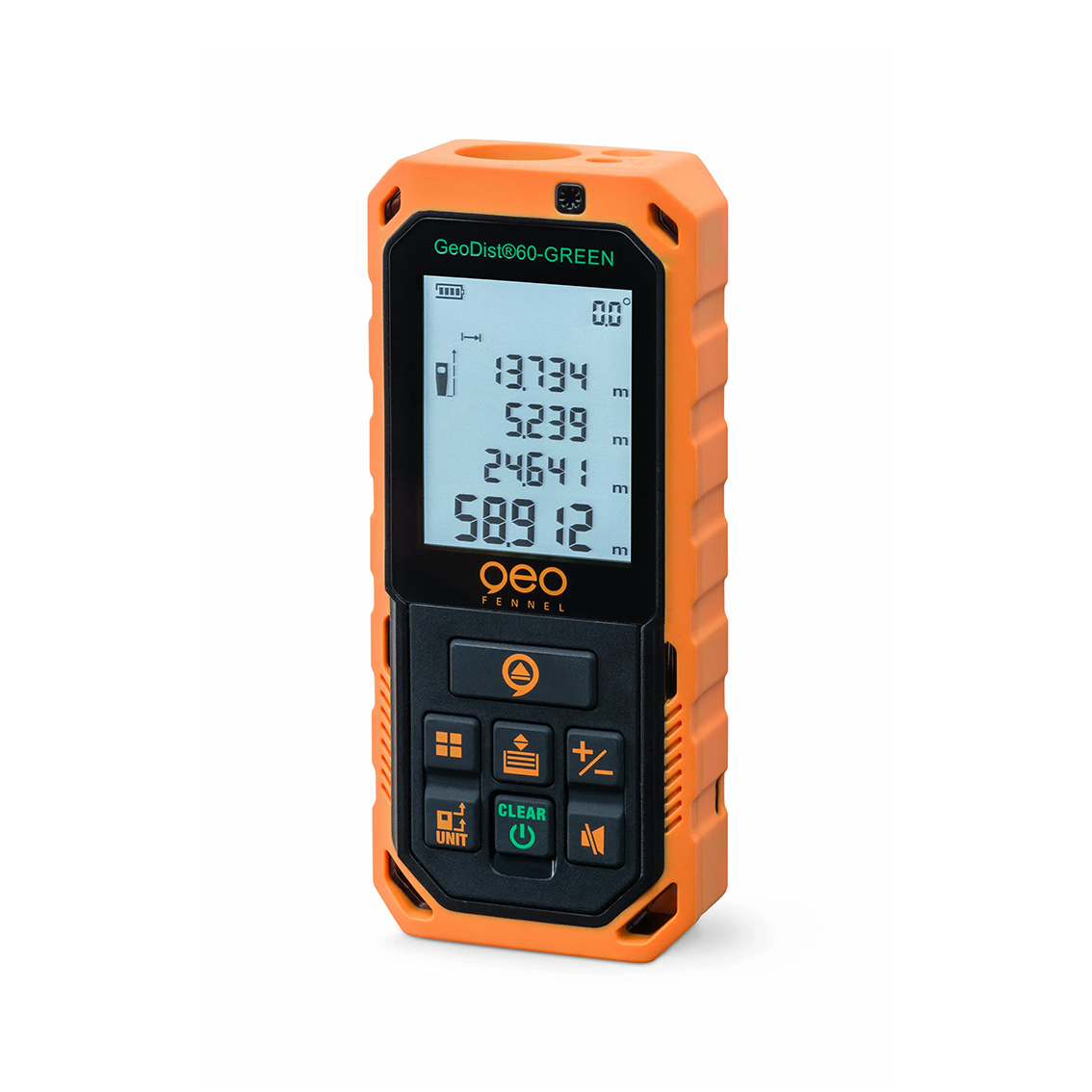 Mätområde på 60 m och mätnoggrannhet ± 2 mm, IP 65 och stöttåligt hölje. Grön laserstråle. Gradskiva, Pythagorasfunktioner, automatisk höjdmätning och dataminne. Levereras med uppladdningsbara NiMH-batterier.