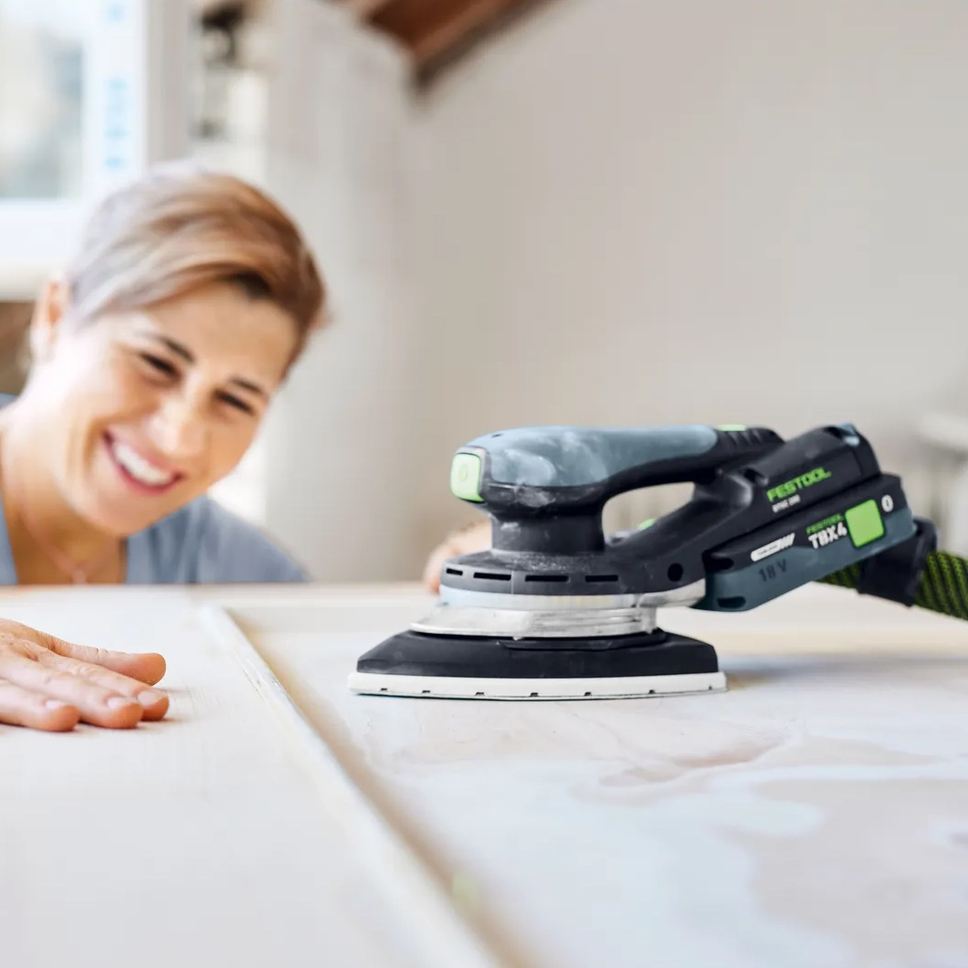 - Fler funktioner med Festool-appen: Med din smartphone kan du dimra ljuset steglöst och ställa in efterbelysningen – då kan du kontrollera ytan en gång till efter slipningen