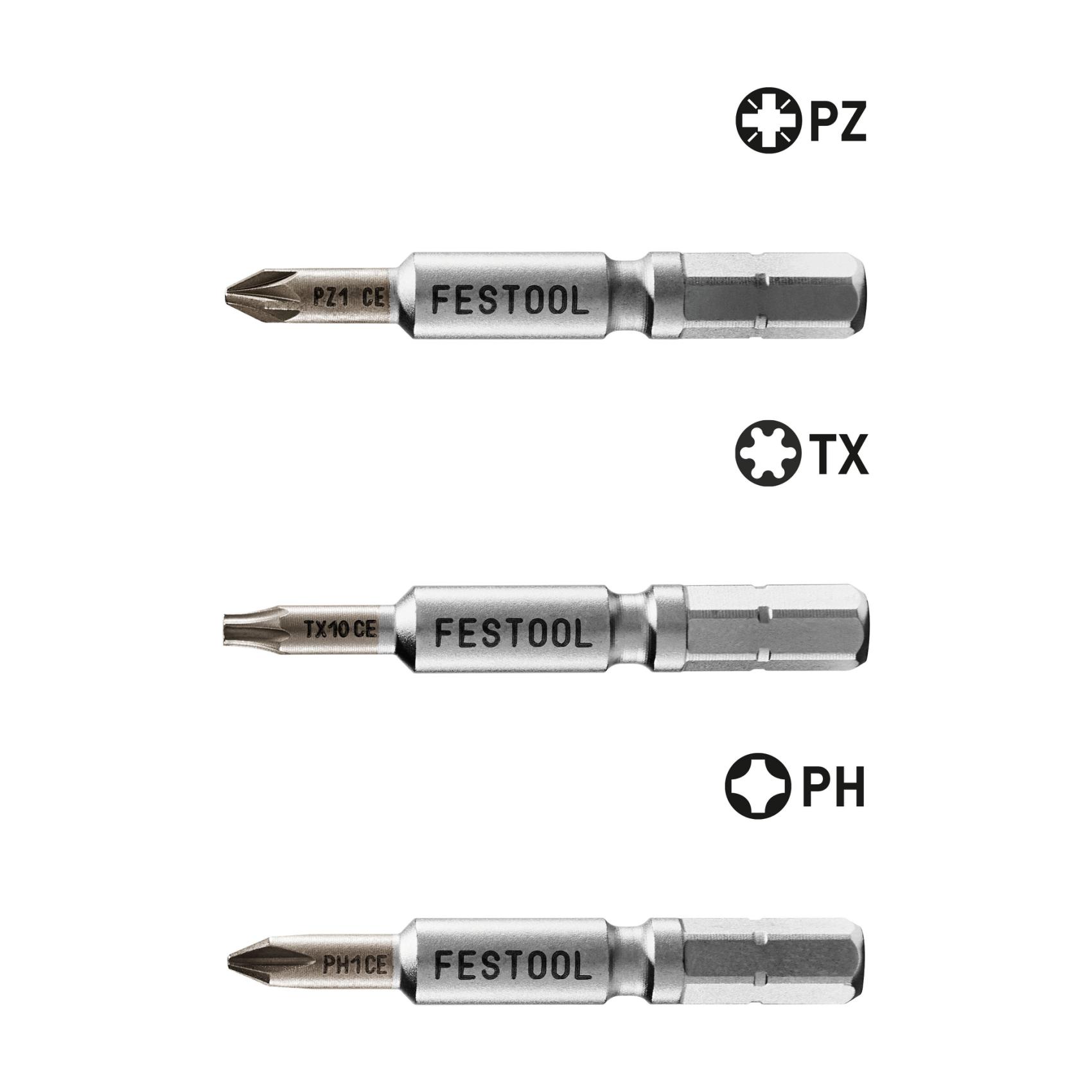 Bits 50 mm för Festool-skruvdragare. PZ 1-3, PH 1-3 och TX 10-40. 2 st/förpackning.