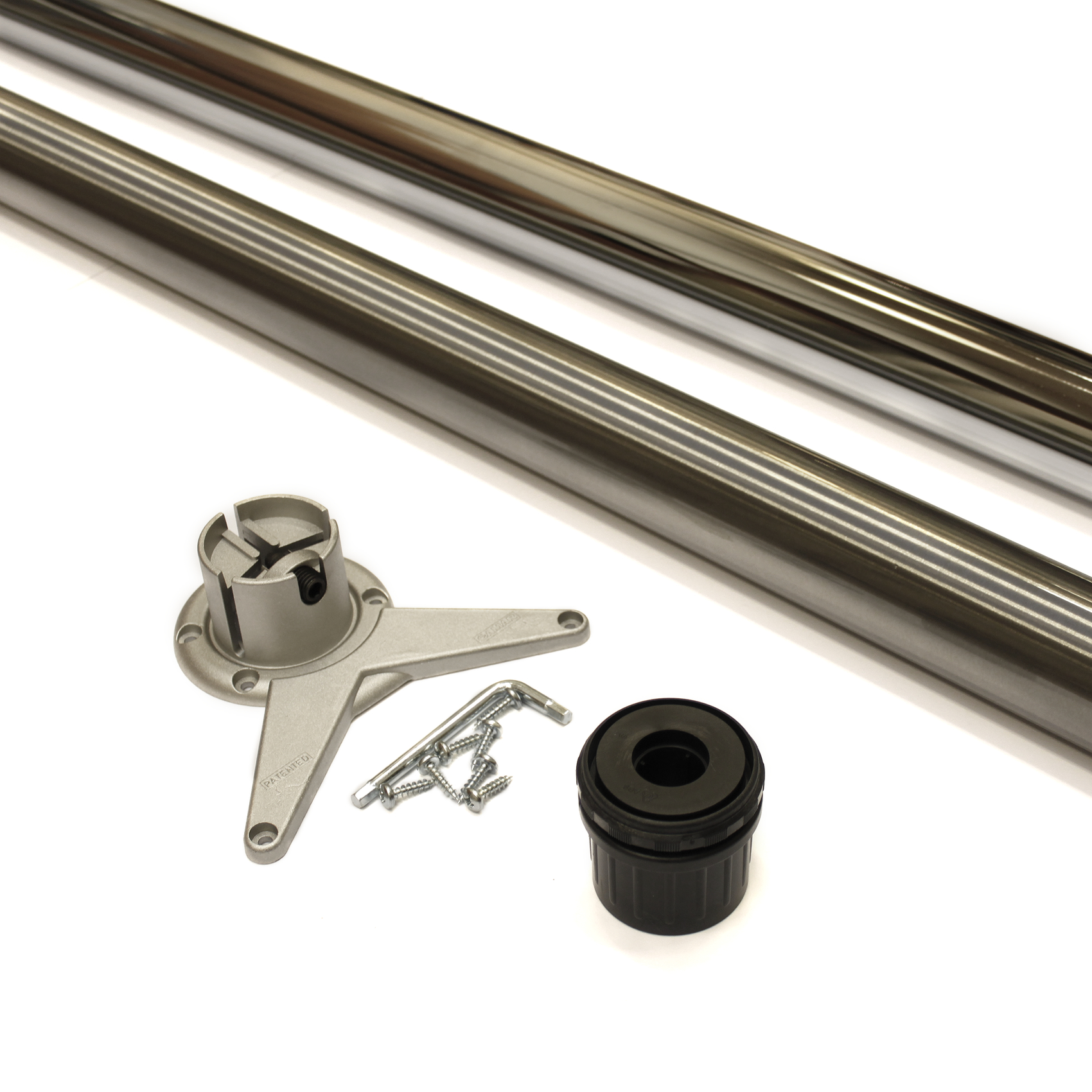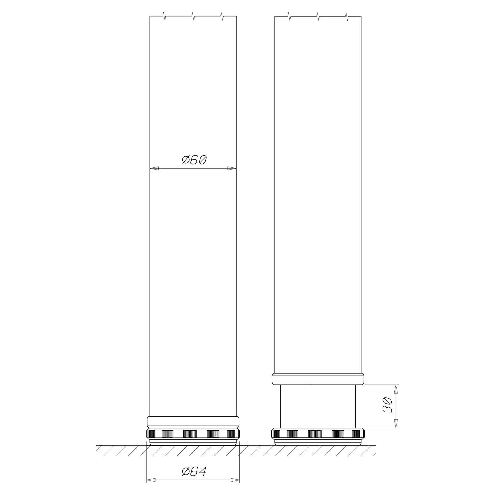 Ben för kapning. Benet är 60 mm i diameter och finns i blankförkromat eller obehandlat klarlackerat stål. Fästplatta i zamak. Fot av svart plast.