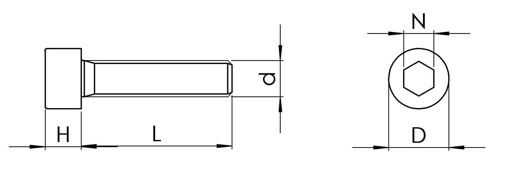 Kval. 8.8 DIN 912. M6 - D: 10 mm, N: 5 mm, H, 6 mm M8 - D: 13 mm, N: 6 mm, H, 8 mm