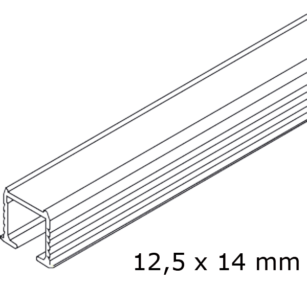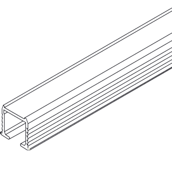 Enkel bärskena i aluminium för limning. Passar både trä och glas. Modellen för limning finns i två längder; 3 m eller 6 m. Modellen med vridregel är 2,5 m.
