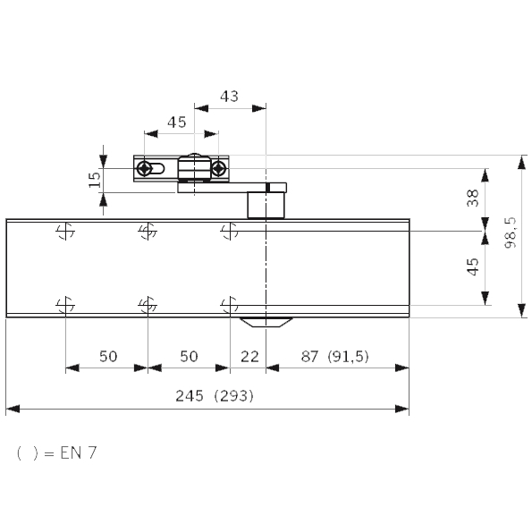 Enkel att montera och ännu enklare att justera. Dörrstängarhuset är tillverkat i silverlackerat stål. Produkten levereras utan armar och plattor, se separata artikelnummer. Övergångsplatta (245x60 mm) underlättar montering vid "renovering" där annan eller gammal dörrstängare använts.