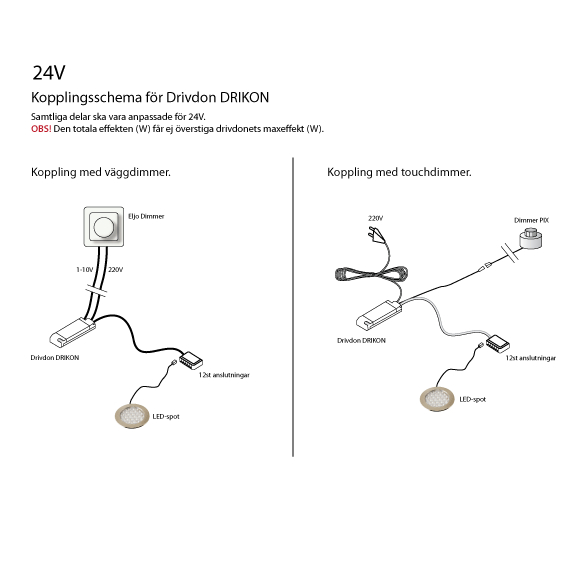 Starkt drivdon Drikon för LED-lampa som kn driva upp till 11 LED-lampor. Dimbar med vanlig Eljo väggdimmer.