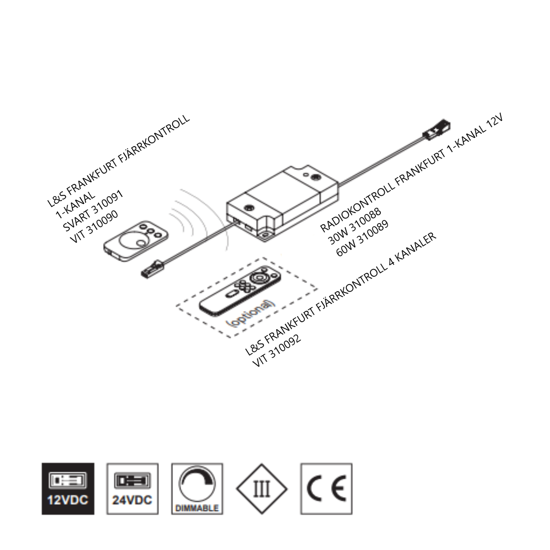 Observera att denna kontroll endast kan kopplas ihop med strömbrytare/kontroller i serien Frankfurt. Finns med 30W eller 60W.
