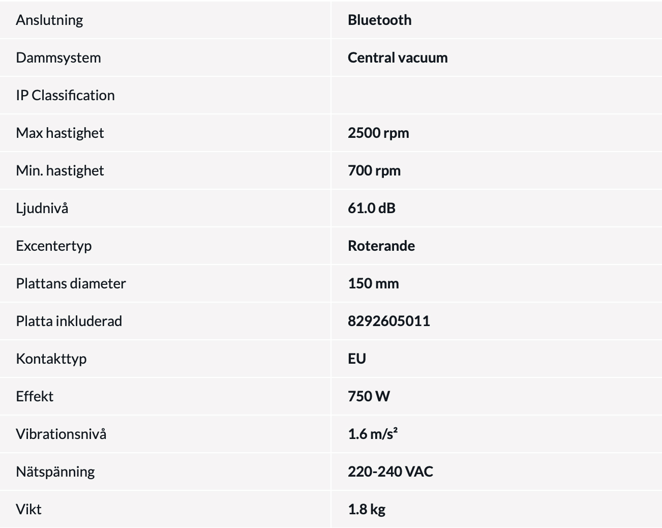 Ergonomisk roterande slipmaskin för tunga applikationer och allmän slipning. Lämplig för slipning av tuffa material i krävande applikationer, allt från trä och massiva ytor till metall och betong. Den kraftfulla borstlösa motorn med lång livslängd producerar 750W. Hastighet justerbar mellan 750rpm och 2500rpm med en valbar funktion för långsam start. Lätt och låg profildesign för enkel manövrerbarhet, smidig hastighetskontroll och säker hantering med spak, på/av-knapp och LED-indikator för sliphastighet. Jämn drift med låg ljudnivå för bra användarkomfort. Har Bluetooth-anslutning för övervakning av vibrationsnivåer med hjälp av myMirka-appen.
