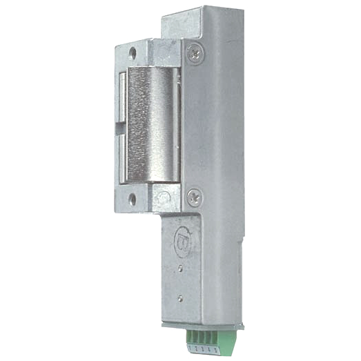 Rättvänd funktion, låst utan spänning. Med monteringsstolpe och mekniskt lås uppfyller elslutblecket kraven för låsning av brandklassade dörrar. Elslutbleck 570 är med indikering.