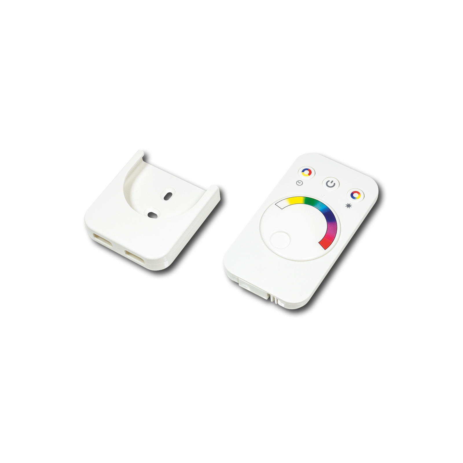 RGB-fjärrkontroll med väggfäste – Smidig styrning RGB LED-system Frankfurt. Steglös justering av RGB-färger samt dimringsfunktion i tre nivåer för perfekt ljusstämning. Fjärrkontrollen levereras med väggfäste för enkel och praktisk förvaring. Ett användarvänligt komplement till ditt LED-styrsystem.