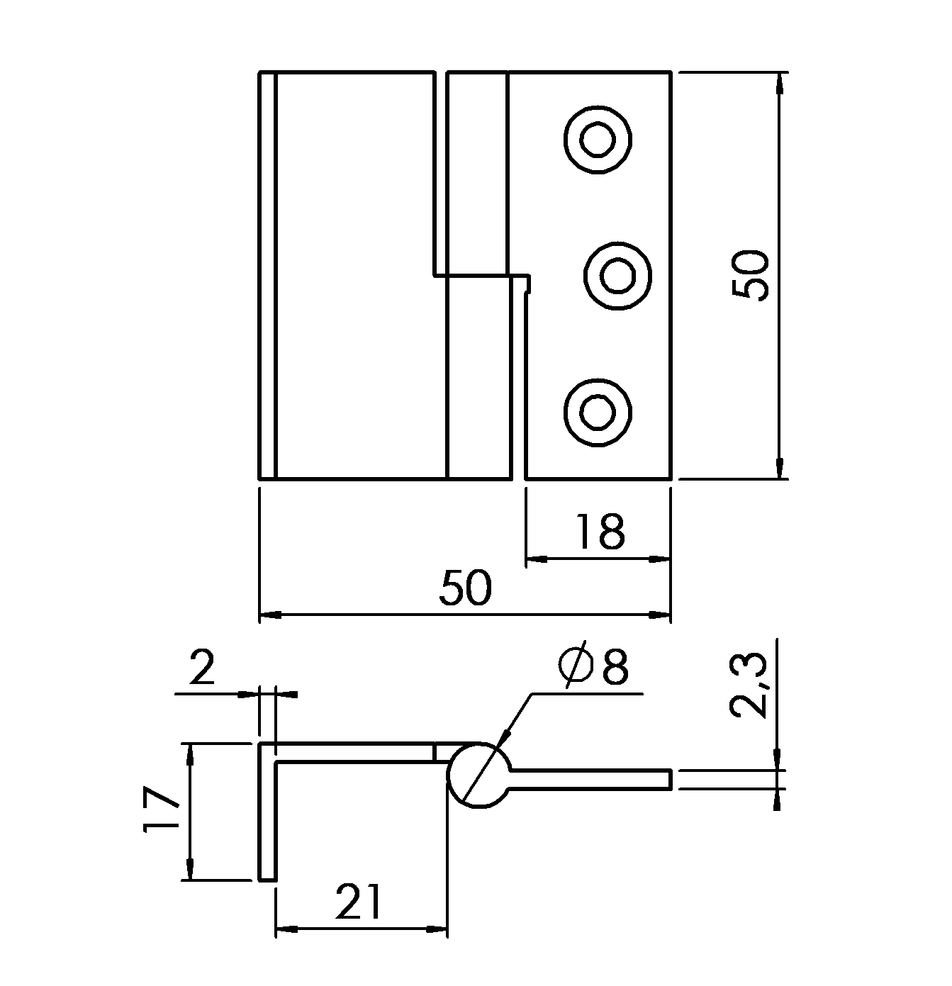 Passande skruv STFX 3,0. Finns som höger (H) eller vänster(V) för dörrtjocklek 18-21 mm.