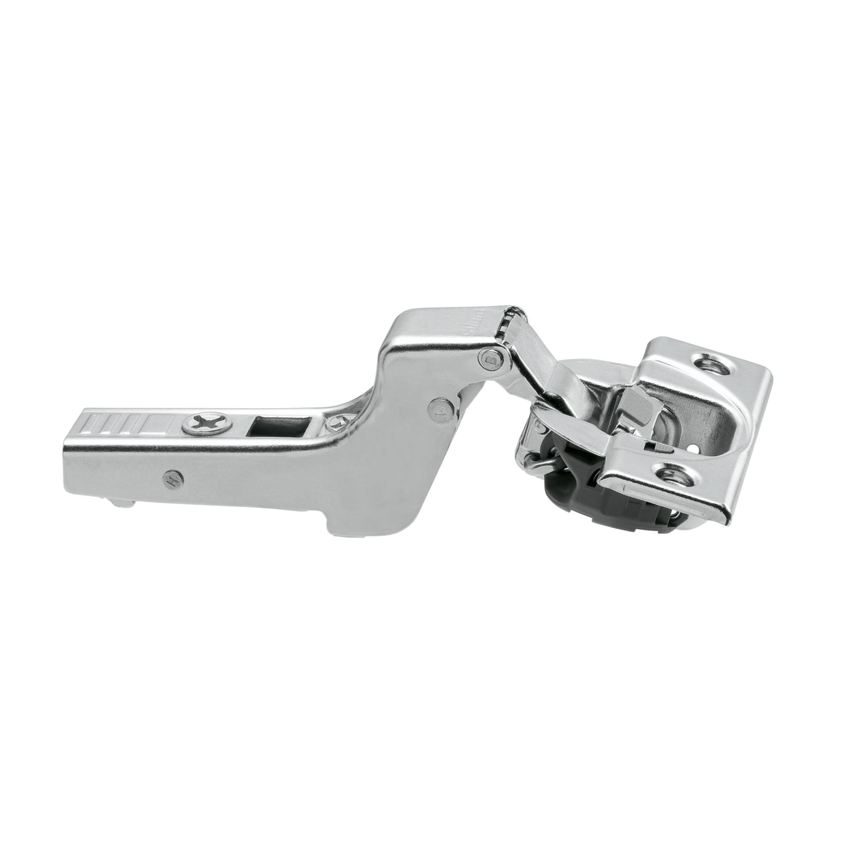 Gångjärn i förnicklad metall för innanförliggande lucka med öppningsvinkel 110°. Finns med eller utan dämpning, så kallad BLUMOTION.