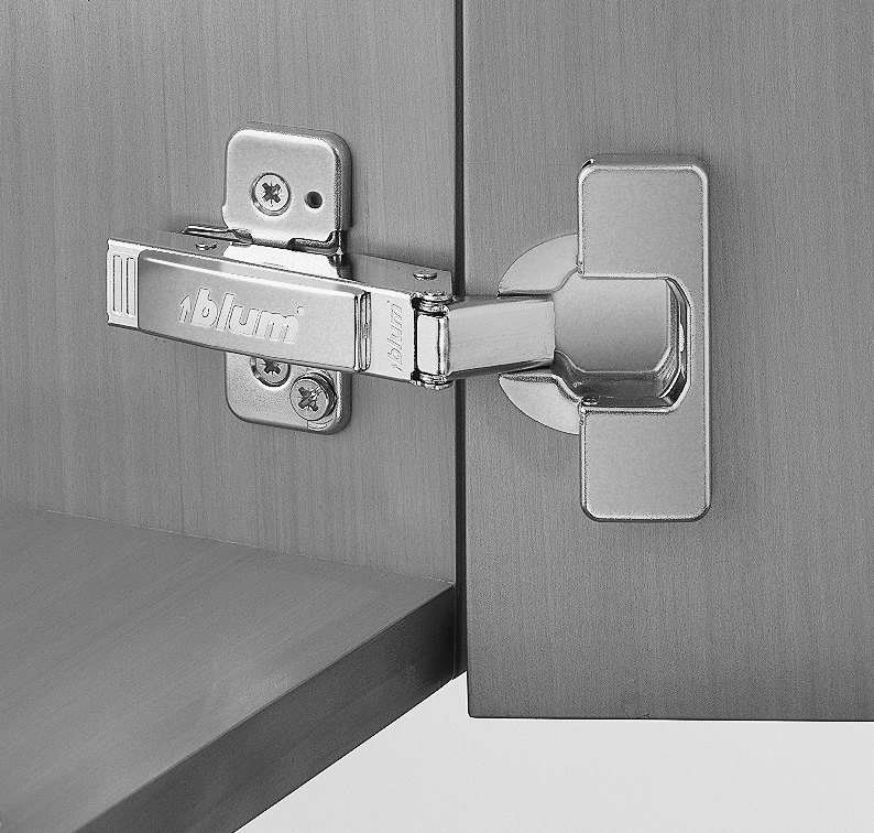 Gångjärn, odämpat, för heltäckande lucka i förnicklad metall med öppningsvinkel 120°. Finns i två modeller, en med och en utan fjäder.
