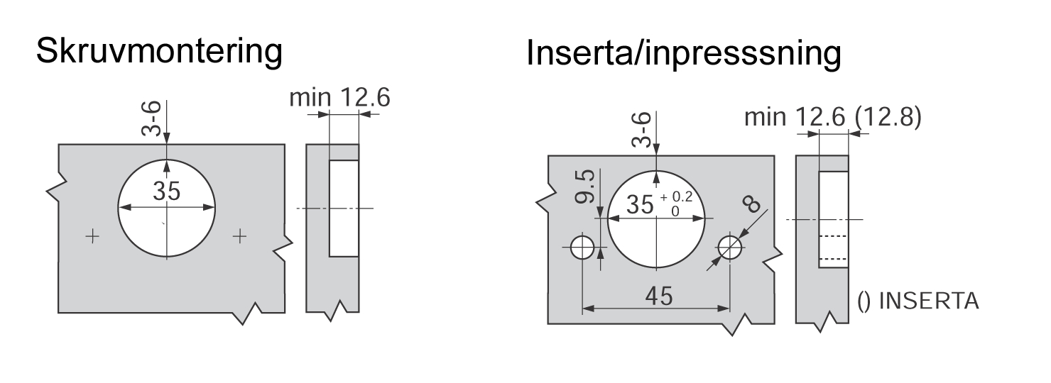 OBS gångjärn utan fjäder är speciellt avsedda att användas tillsammans med utstötare. Med enkel djupjustering genom excenter. Vid INSERTA, verktygslös montering av grytan. Gångjärnet används tillsammans med lämplig monteringsplatta som beställs separat.