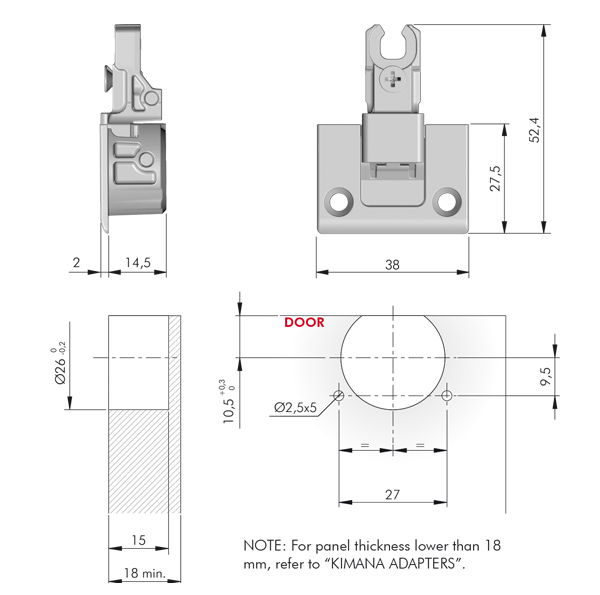 Kimana gångjärn ger ett stilrent och plant utseende. Levereras komplett med gångjärnsdel, täckbricka och monteringsplatta.