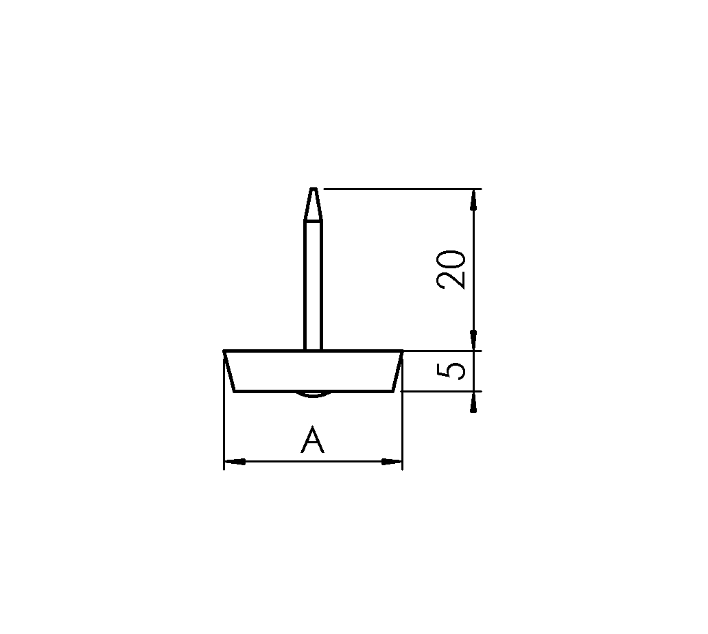 Tjocklek 5 mm och spikens längd är 20 mm.