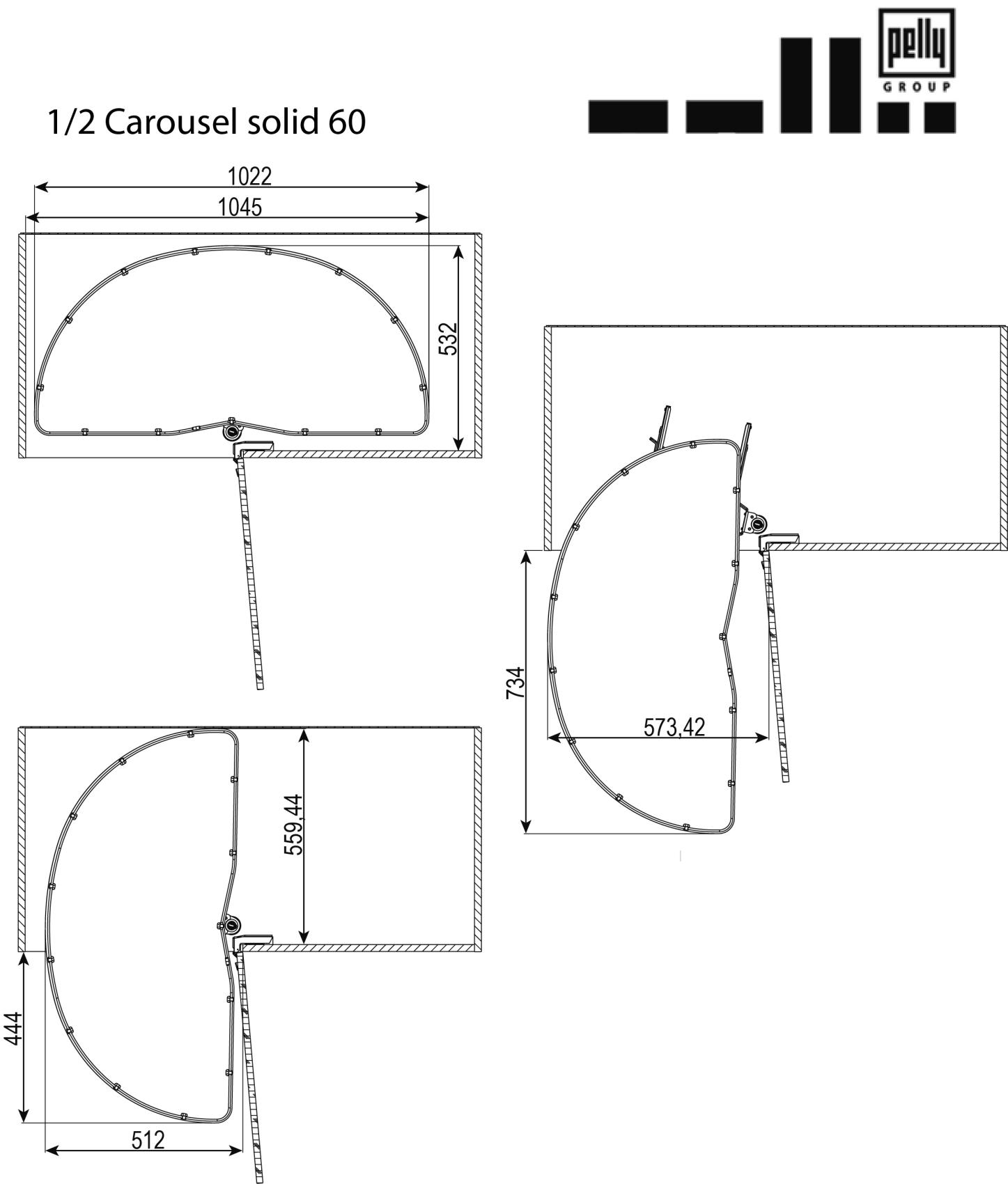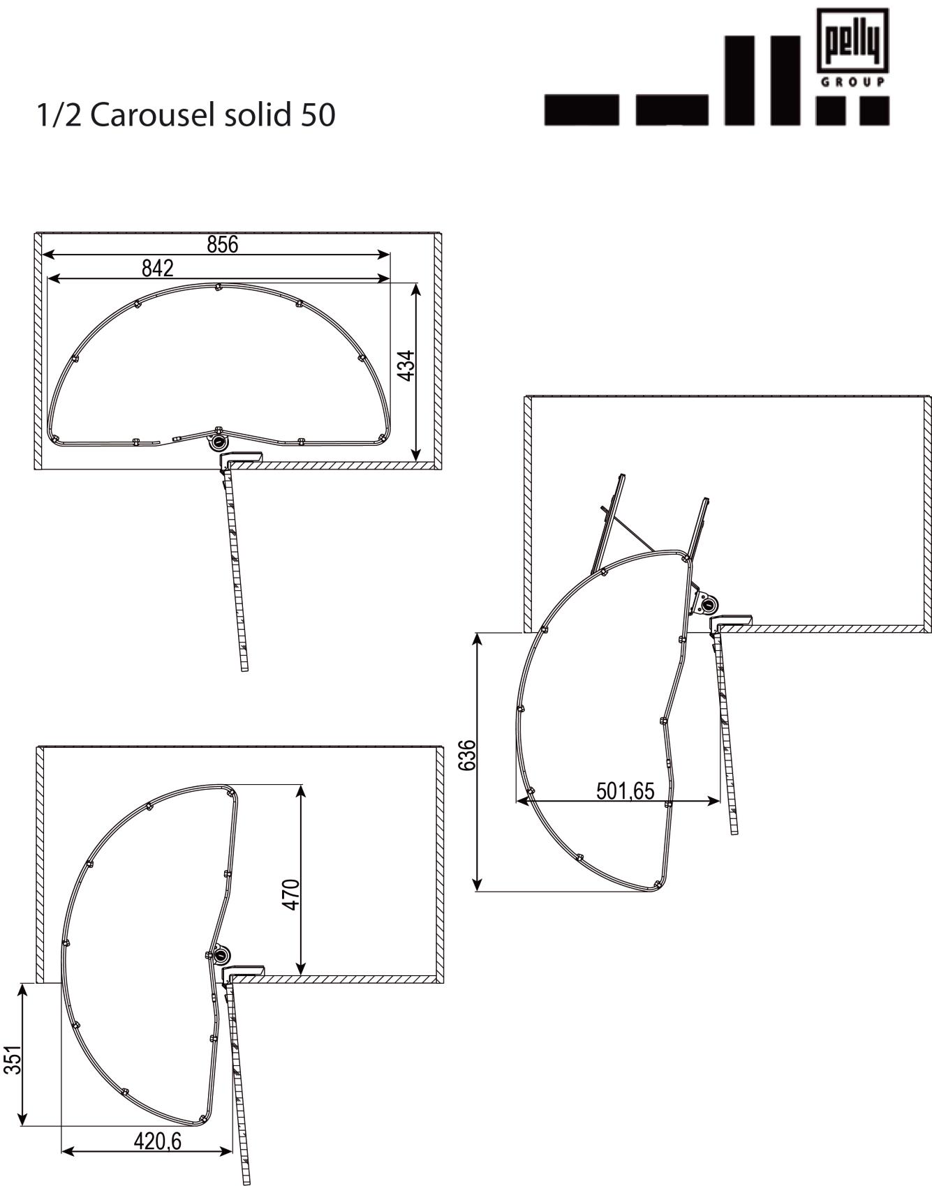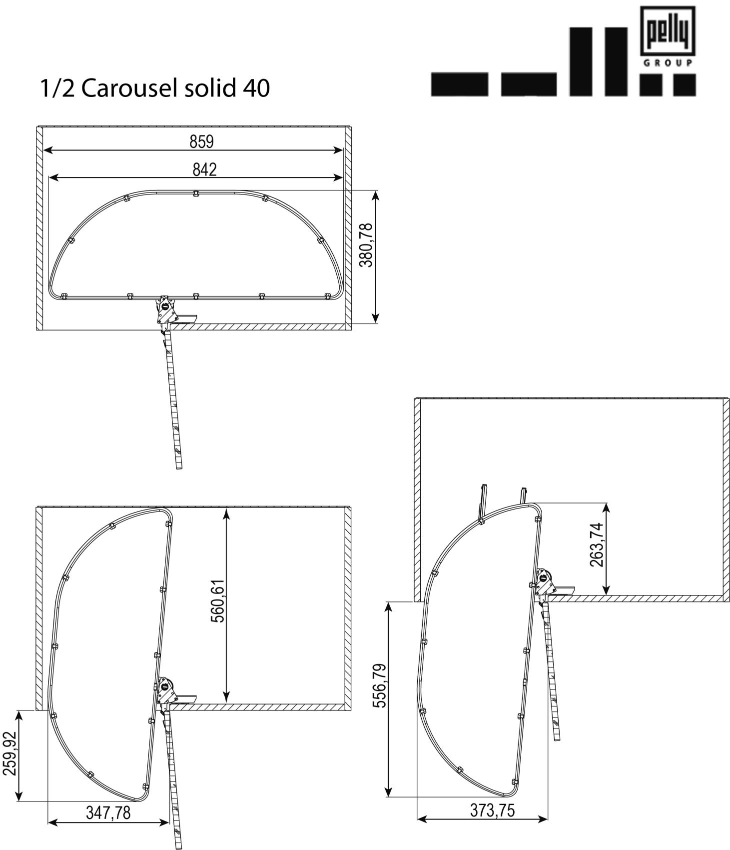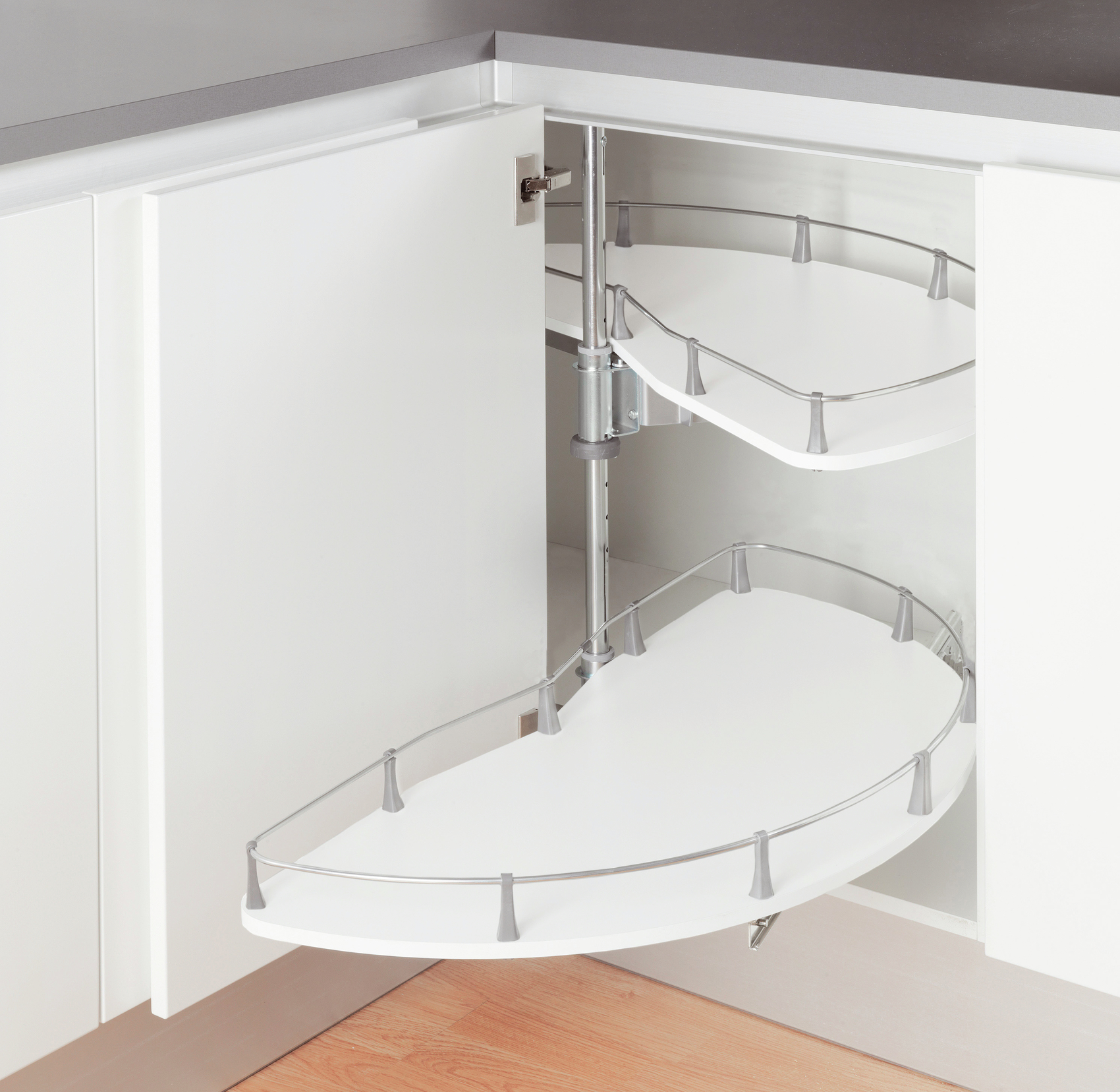 Utdragbar karusell med två vita hyllplan med förzinkad sarg. En kompakt lösning för optimal logistik. Kan användas som både höger- och vänsterhängd. Maxvikten per plan är 18 kg.