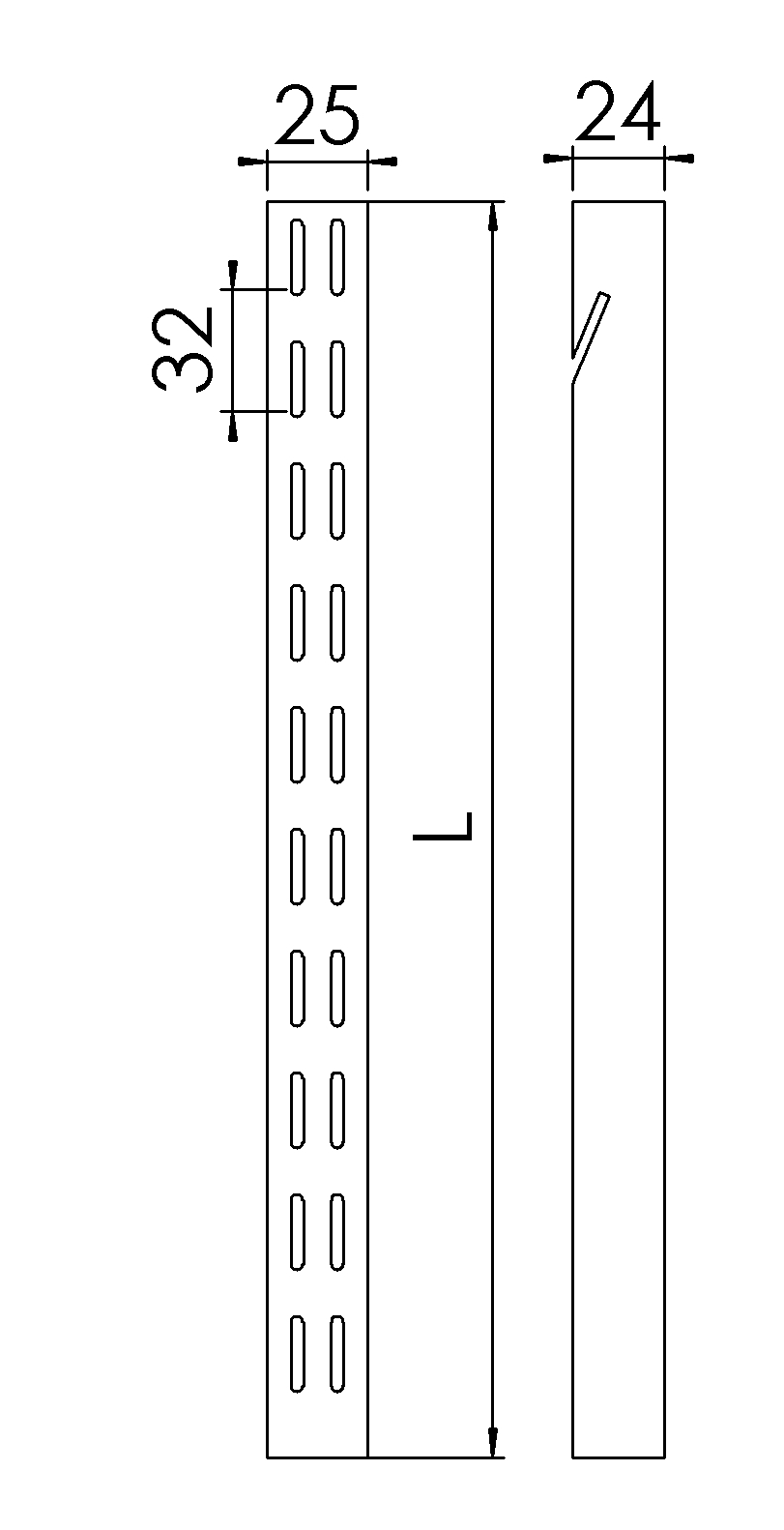 Hängskena i stål, vit- eller silverlack. Med förstärkta skänklar. Används tillsammans med PELLY konsoler.