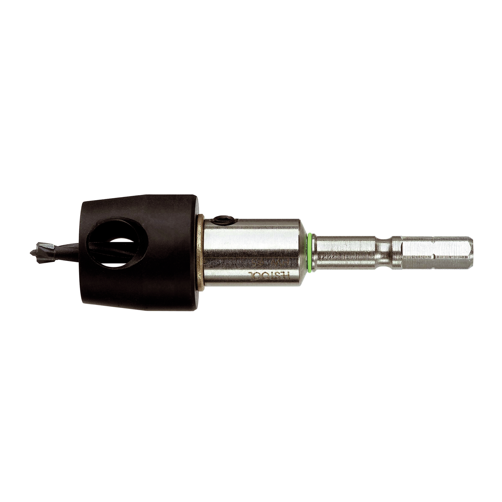 Ett hårdmetallborr med djupinställning. Diameter 5 mm. Utbytbara borrbits, se lista under huvudartikeln.