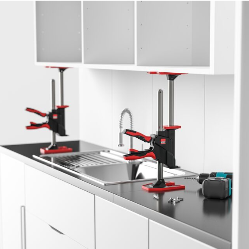Det tvådelade installationskitet BEY-IK möjliggör snabb, verktygsfri montering av väggskåp, svävande sideboards och badrumsmöbler. Det utökar användningsområdet för BEYCEPS: Förlängningsadaptern ger ensam ett användningsområde på 170 mm till 400 mm. I kombination med skenanheten kan användningsområdet utökas till upp till 620 mm – perfekt för hög användning.
