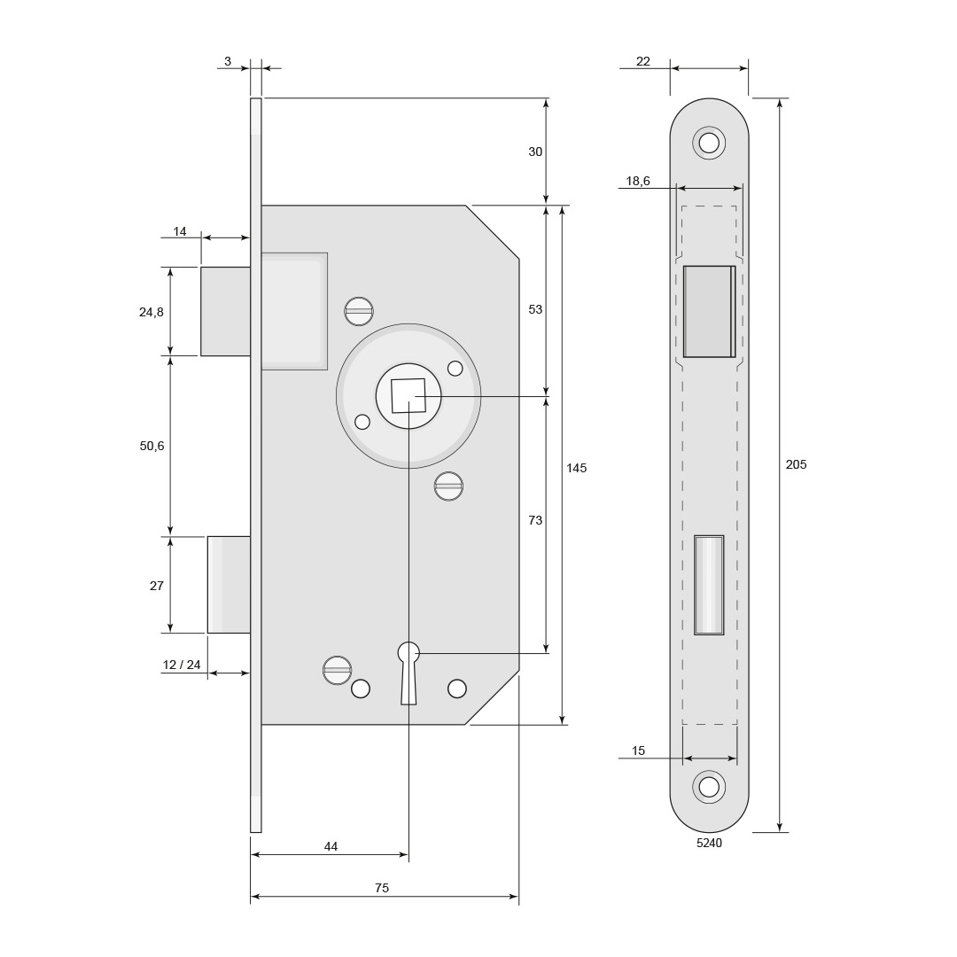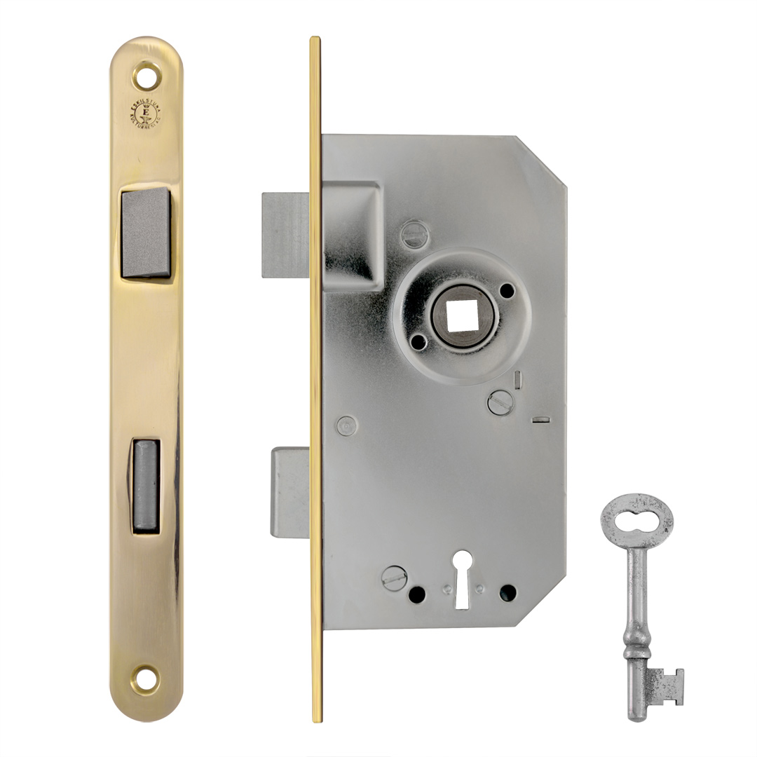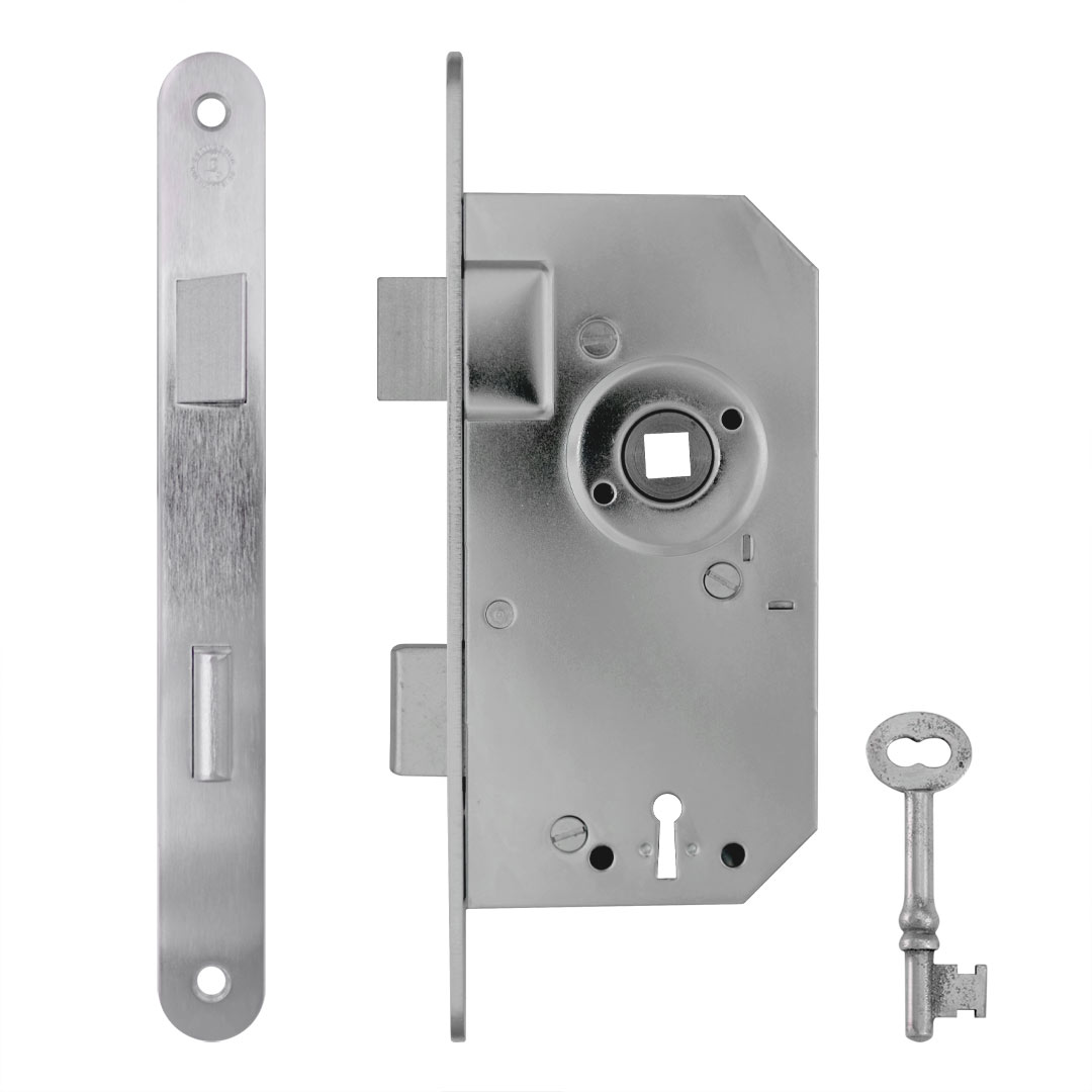 Lås för innerdörr, utformat efter en låsmodell som började tillverkas 1945 och som fortfarande tillverkas. För att säkerställa att låset ska hålla en hög kvalité är låsdelarna är tillverkade av hållbara material. Stolpen går att få i förzinkat stål eller i polerad mässing och har en bredd på 22mm. Roddaren där den fyrkantiga pinnen till dörrtrycket ska sitta är 9 mm för att även gamla modeller av dörrtrycken ska passa, vi skickar med en roddarbussning så att det även ska fungera med moderna dörrtrycken. Nyckeln tillverkas i segjärn för att man ska få den rätta känslan.