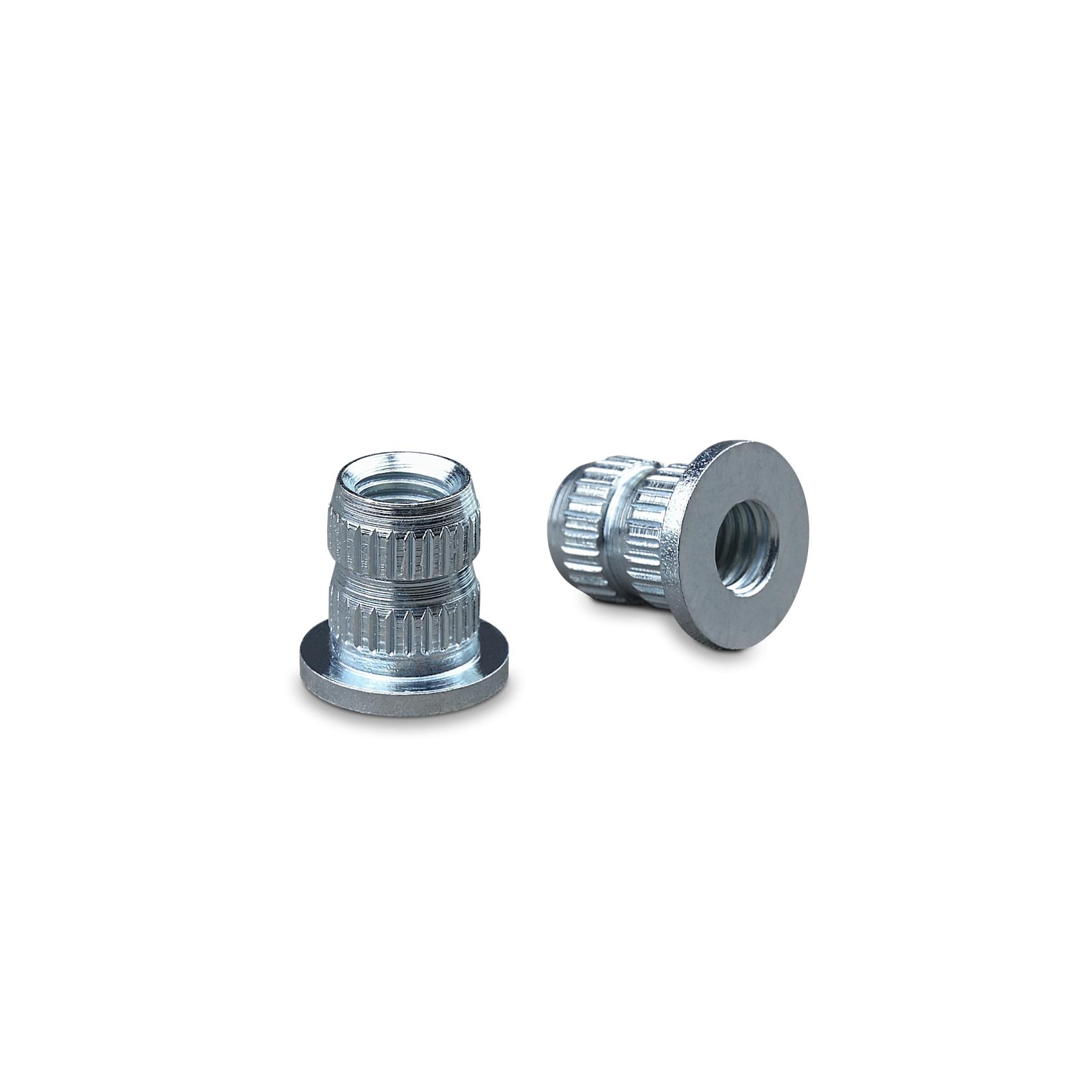 Islagsmuffar i stål har en betydligt bättre hållfasthet och passar perfekt till applikationer med större påfrestningar. Passar för infästningar i t.ex. massivträ eller hårdare skivmaterial som MDF.