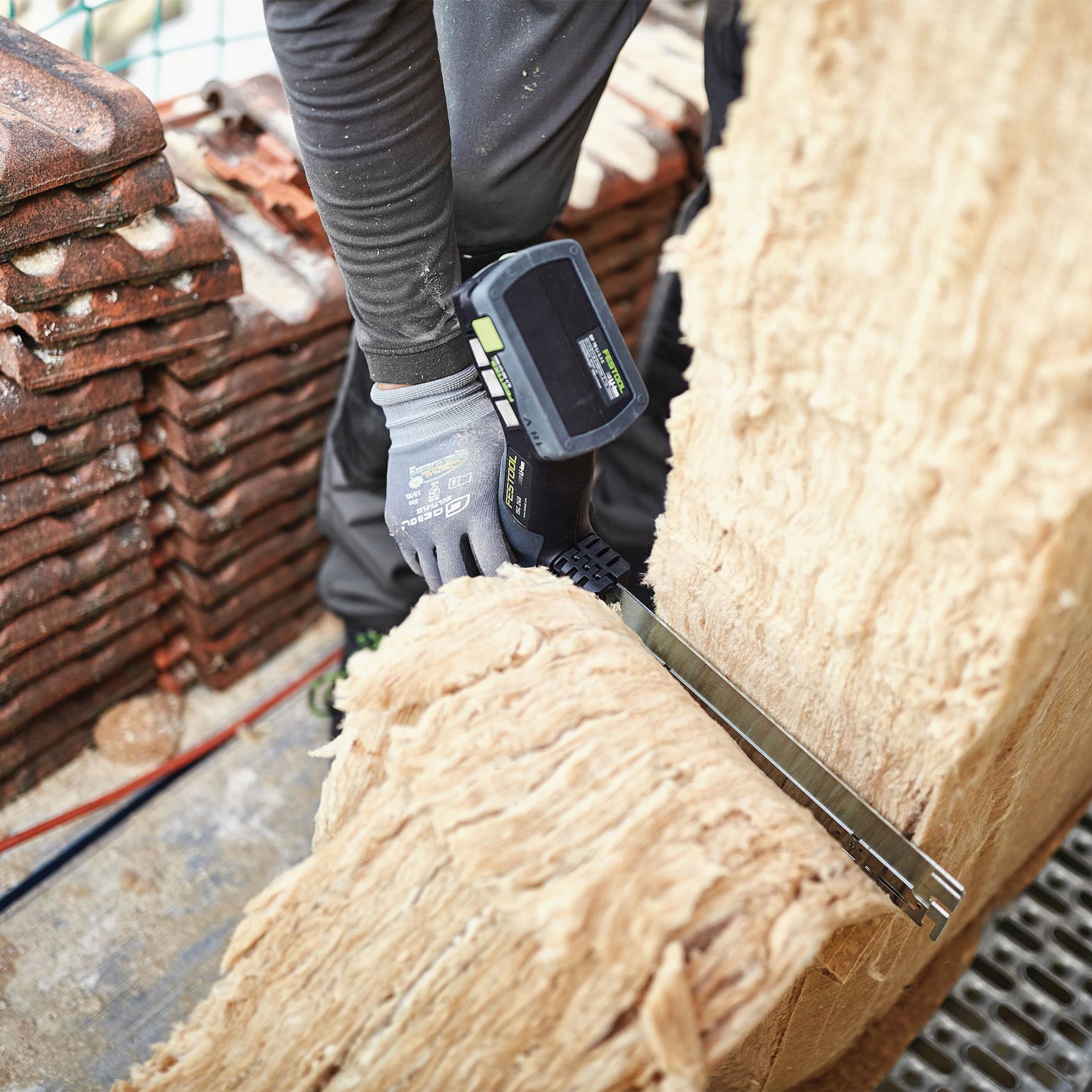 Mobil och ergonomisk isolersåg för flexibla material som mineralull och naturfiber eller PUR och styropor beroende på sågblad. För isoleringsmaterial upp till 350 mm.