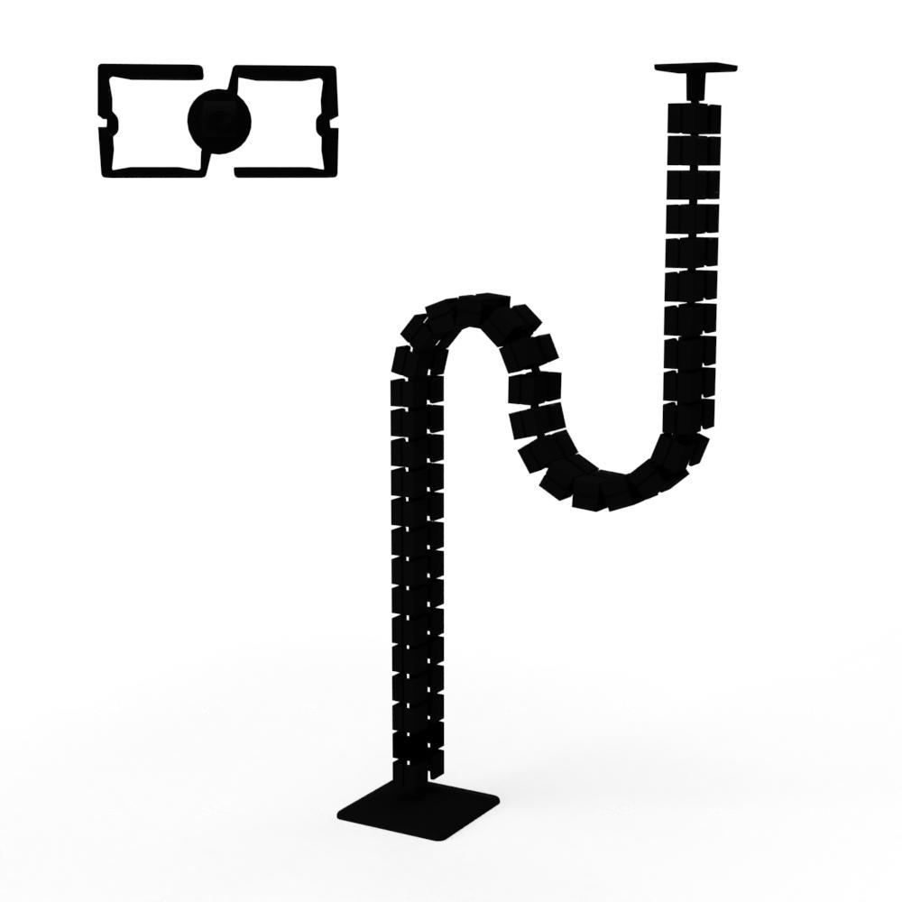 Böjbar och flexibel kabelgenomföring i höjden 1250 mm, anpassad för höj- och sänkbara skrivbord. Två separata kabelgångar. Kombinera gärna med magnetiskt fäste som gör att sladdhållaren sitter fast tätt mot bordsbenet.