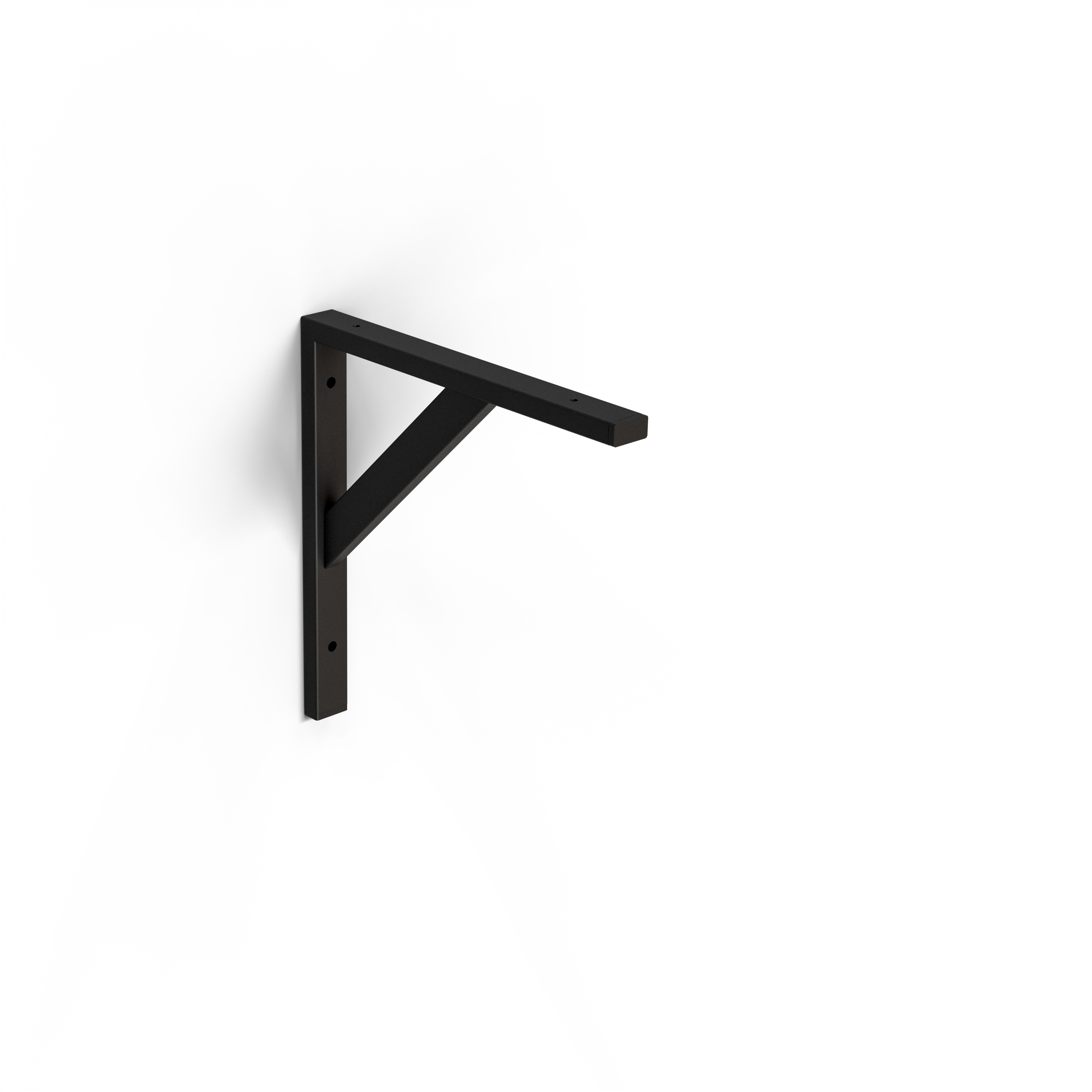 Konsolerna finns med måtten: 200x200 mm, 300x300 mm, 400x400 mm och 500x500 mm i båda färger. Ändförslutningar i plast. För kompletta mått och ritning se teknisk information. Håldiameter väggfäste 8 mm, rekommenderad skruv STRX 6,0. Håldiameter hyllplan 5 mm, rekommenderad skruv STRX 4,5.