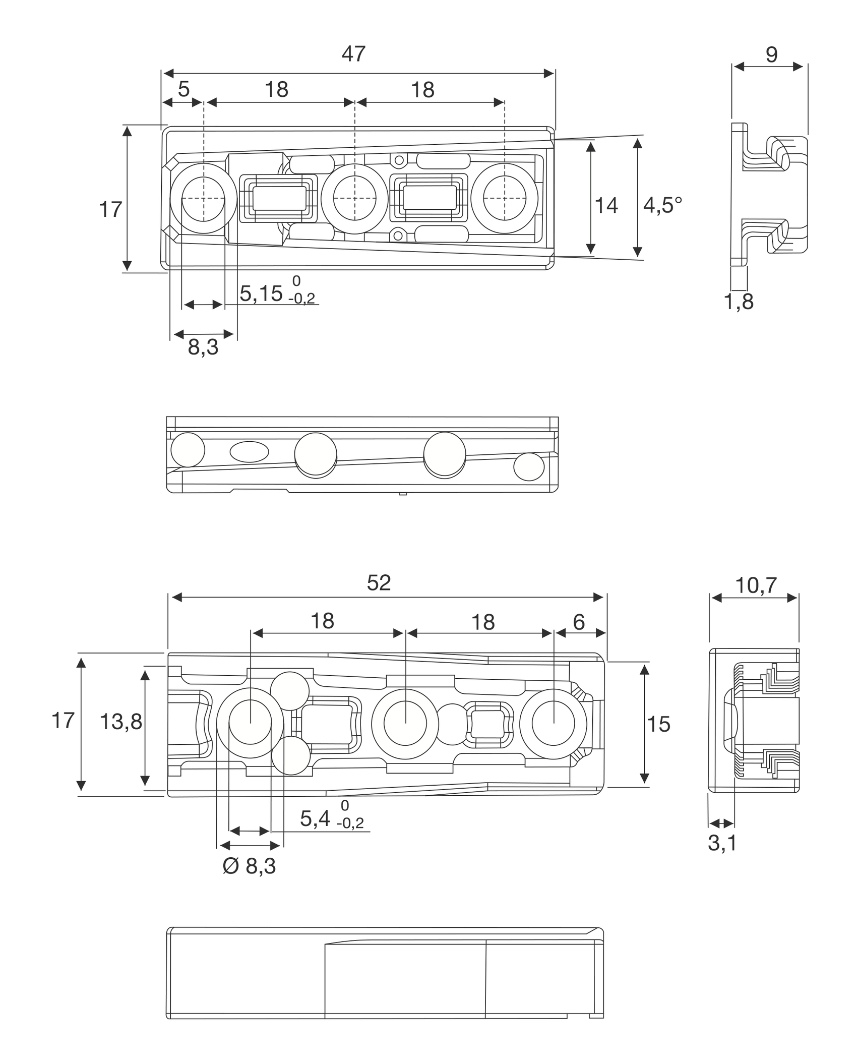 Kopplingsbeslag i helgjuten Zamak. Hona och hane. Används som upphängningsbeslag.