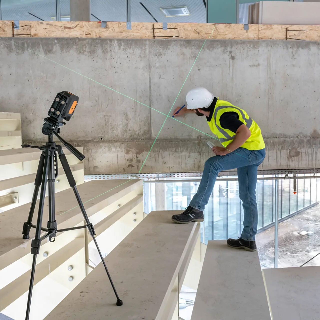 - En vertikal och en horisontell laserlinje som kan bilda ett laserkors
