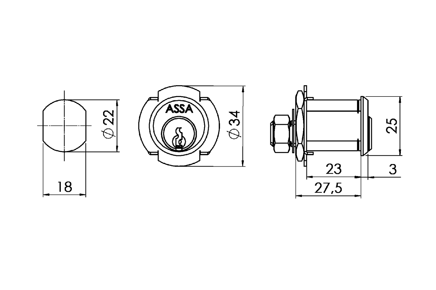Lagerföres i olika (OL) och lika låsning (LL). Till låset medföljer 2 nycklar och spikbricka. Nyckeln är urtagbar endast i låst läge. Passande reglar beställs separat. OBS! Vid montering av lås och regel skall nyckeln vara urtagen.