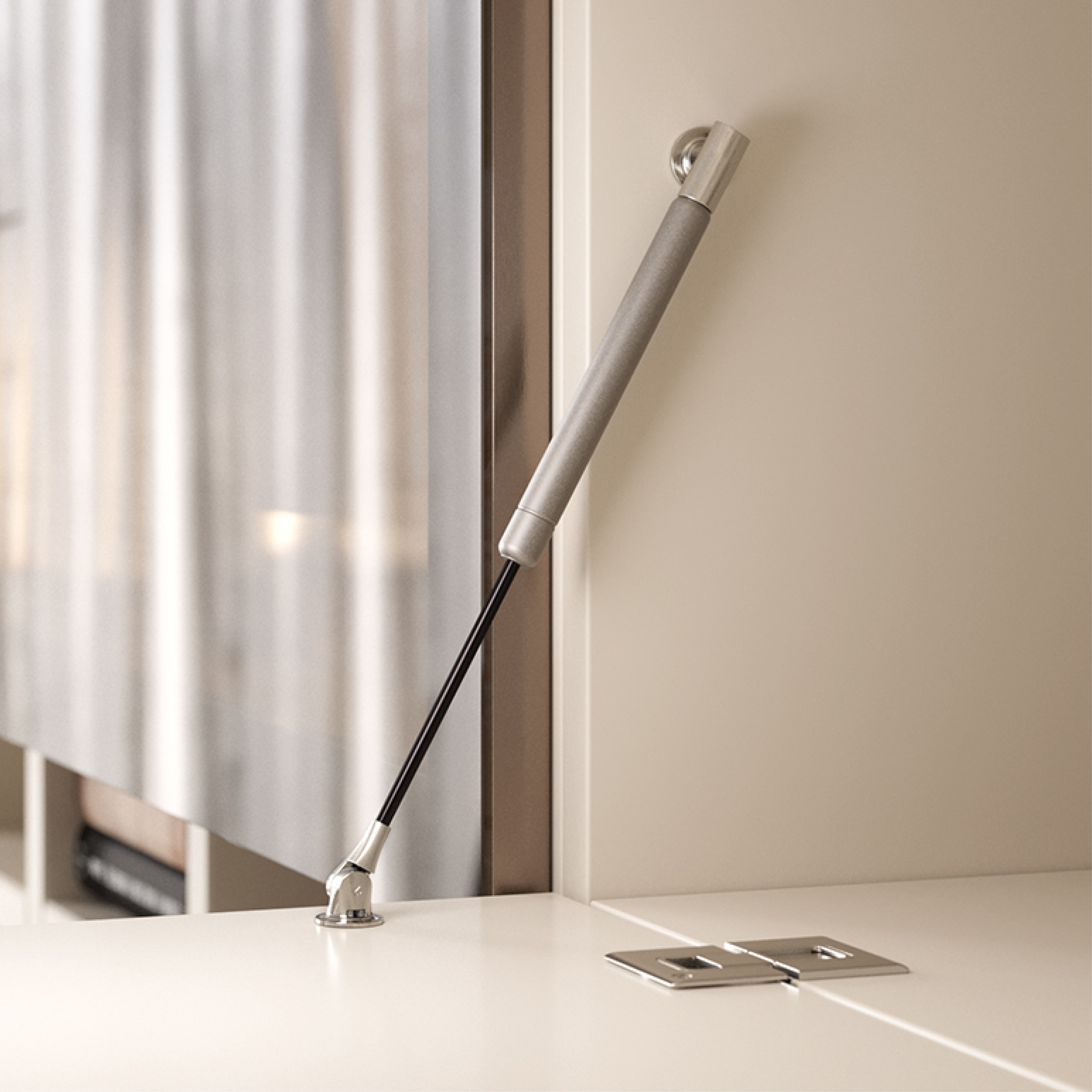 Luckbeslaget är enkelt att installera och har klick-system som garanterar en mjuk och kontinuerlig öppning av luckan. Finns tillgängligt i tre olika längder: 164, 244 och 355 mm. Luckfäste och sidfäste beställs separat.