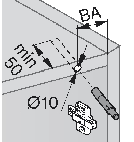 Trög modell för montering på gångjärnssidan. För inborrning eller i kombination med adapterplatta.
