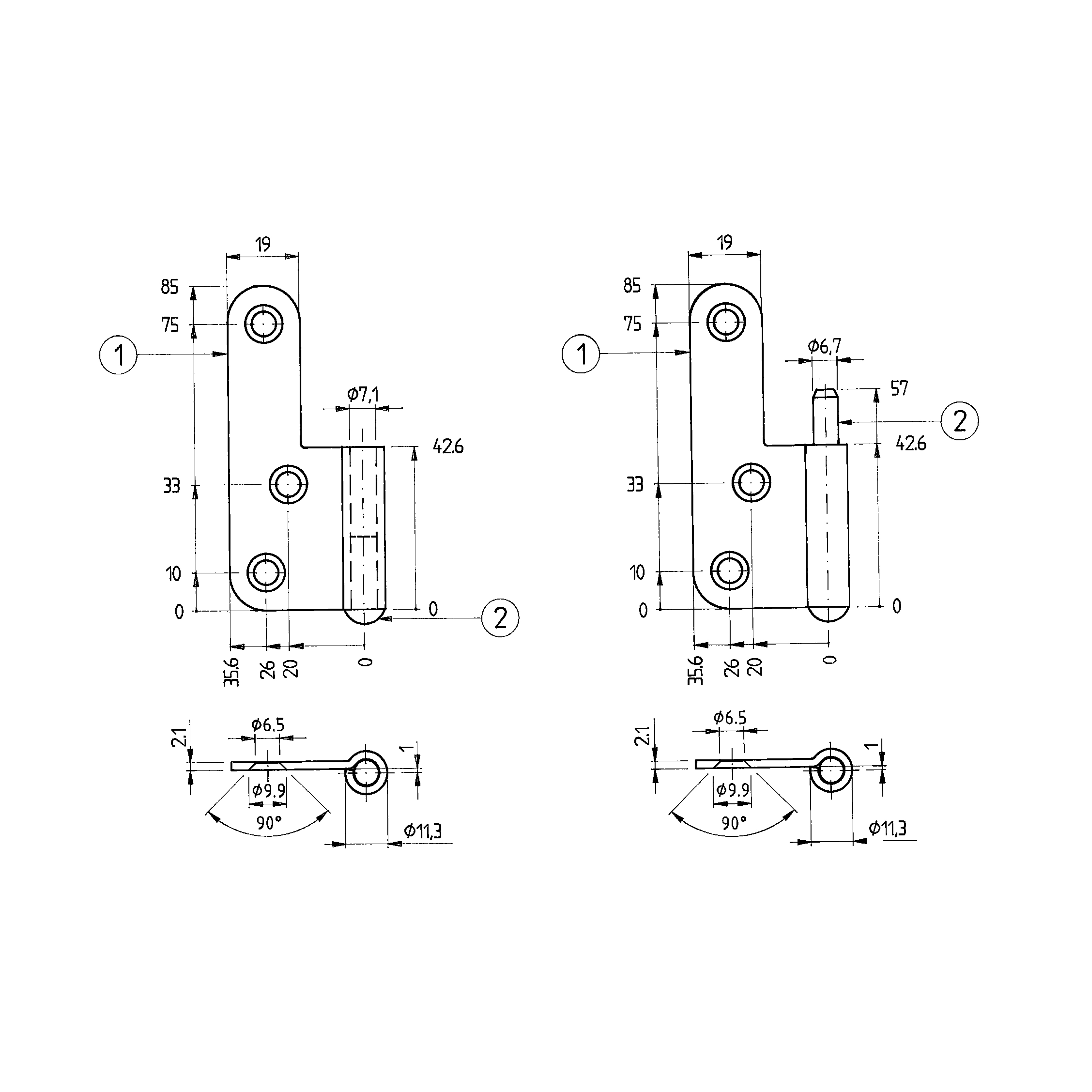 Gångjärnet finns som höger (HÖ) eller vänster (VÄ). Skruv STFX 4,5 x 25 Z medföljer.