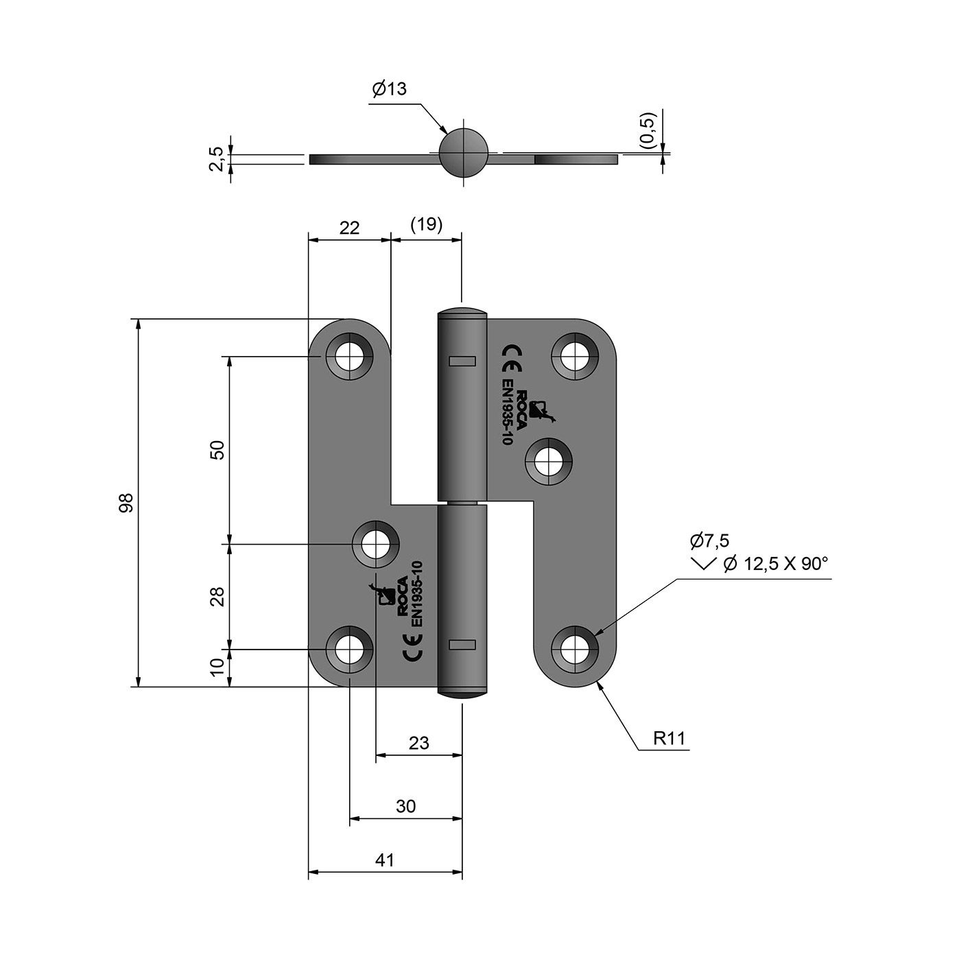 Finns som höger (HÖ) eller vänster (VÄ). Gångjärnet är tappbärande. Passande skruv STFX 5,0 x 30 RF, medföljer inte.