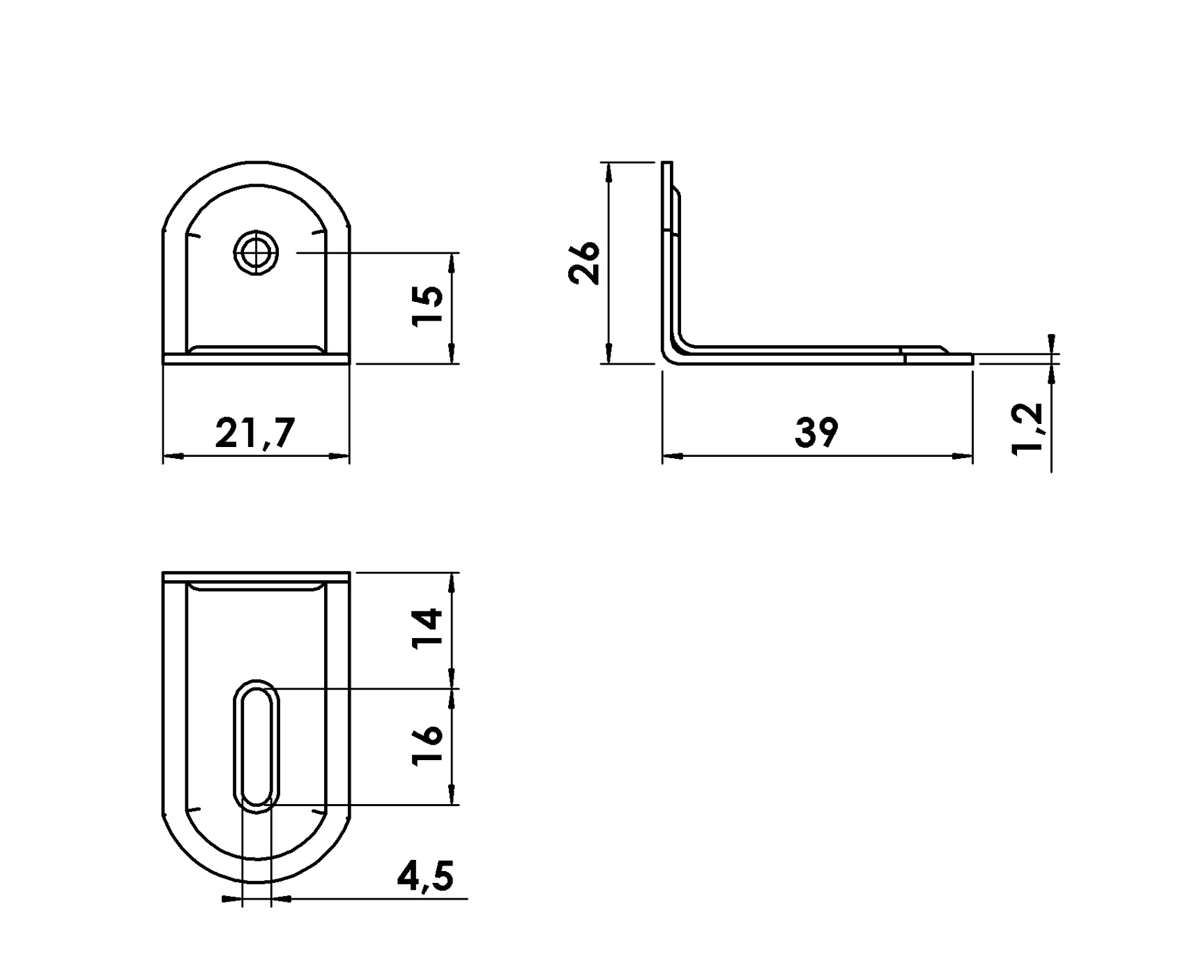 Möbelvinkel i förzinkad stål (Z). Storlek 39x26 mm.