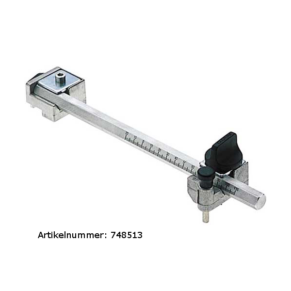 Paralellanslag med artikelnr:748513. Med anslagsryttare, för parallell uppriktning av rälsstyrskenor. Paralellanslag med artikelnr: 748512. Med 2 styrstänger. Lämpar sig för maskintyperna: OF 900, OF 1000, OF 1010, KF.