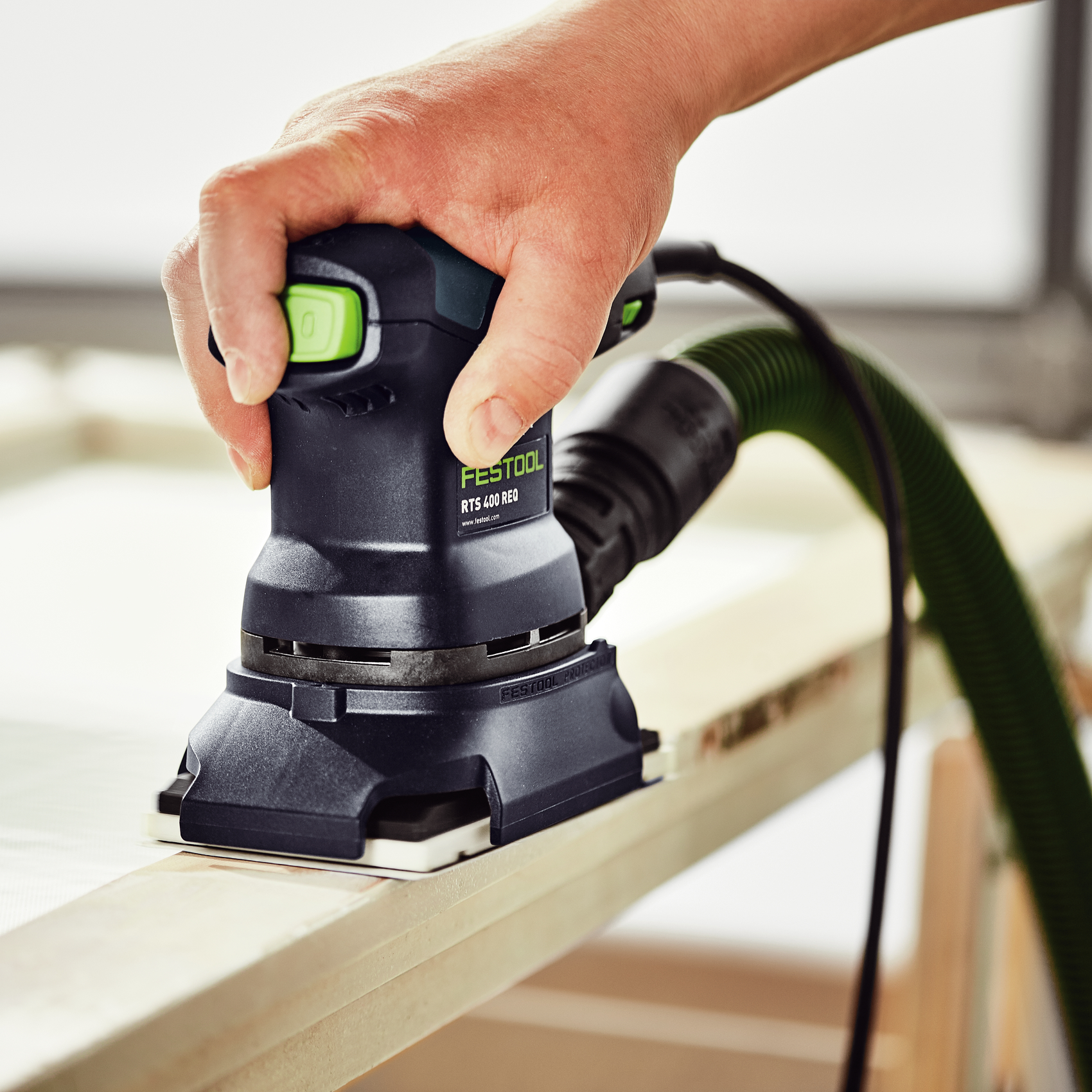 Används i huvudsak för lodräta ytor, arbete ovanför huvudhöjd, enhandsslipning för små och smala ytor, naturträ och fanér före lackering och bortslipning av färg och lack på fönsterarmar. Slipar kantnära på olika material. Levereras antingen i kartong eller Plus som kommer i SYSTAINER SYS3 M 187. Inklusive StickFix slipplatta 80x130 mm.