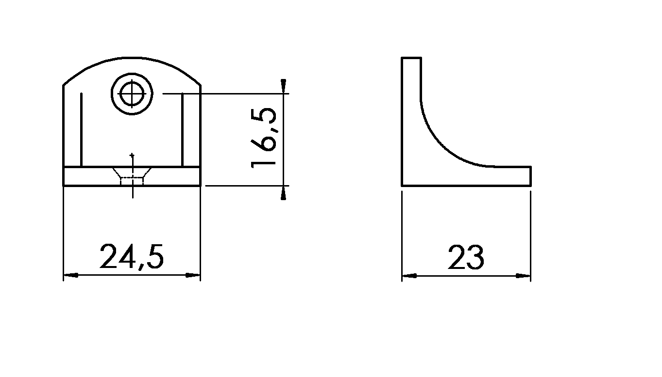Plastvinkel i vitt. Storlek 24,5x23 mm.