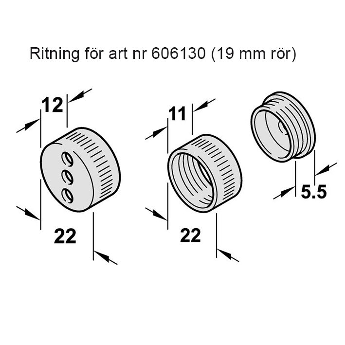 Finns i förnicklad (MN) mässing. För 19 eller 25 mm rör. Lämplig rörlängd = innermått -7 mm för 19 mm rörhållare och -8 mm för 25 mm rörhållare. Passande skruv STRX 3,0. Levereras i par vilket innebär 1 sats med tre delar. Det behövs alltså två par för ett rör.