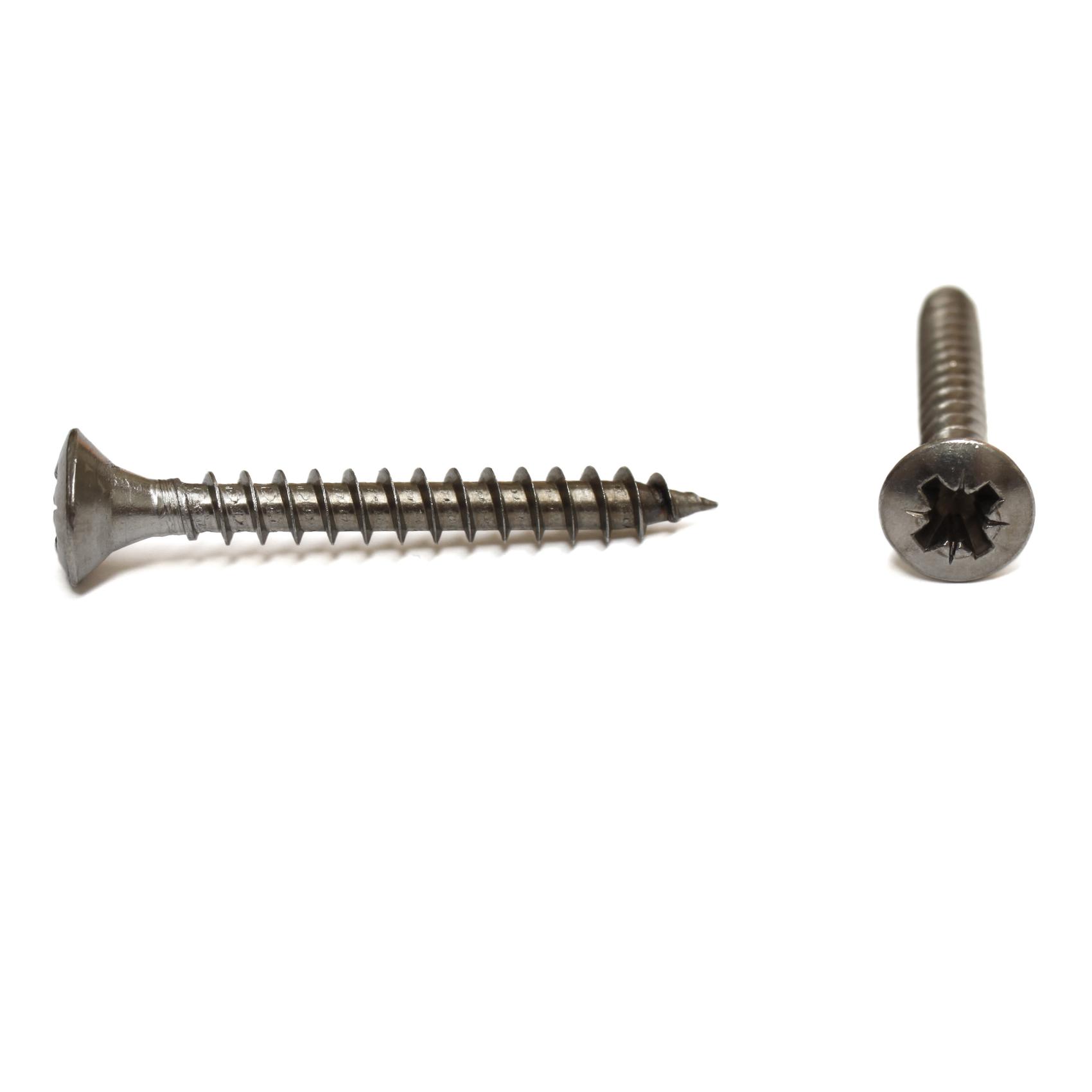 Träskruv i rostfritt stål (RF) med kullerförsänkt huvud och krysspår.
