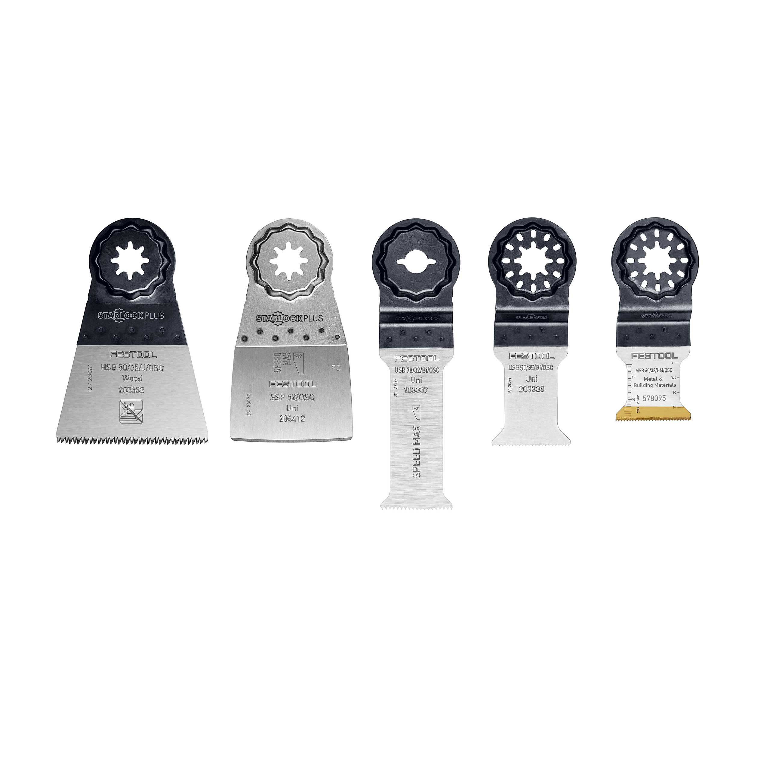Dessa set består av olika blad för att såga de mest skilda material som trä, kompositmaterial, plastmaterial, järnhaltiga metaller och abrasiva material samt ta bort ytskikt som sitter hårt.