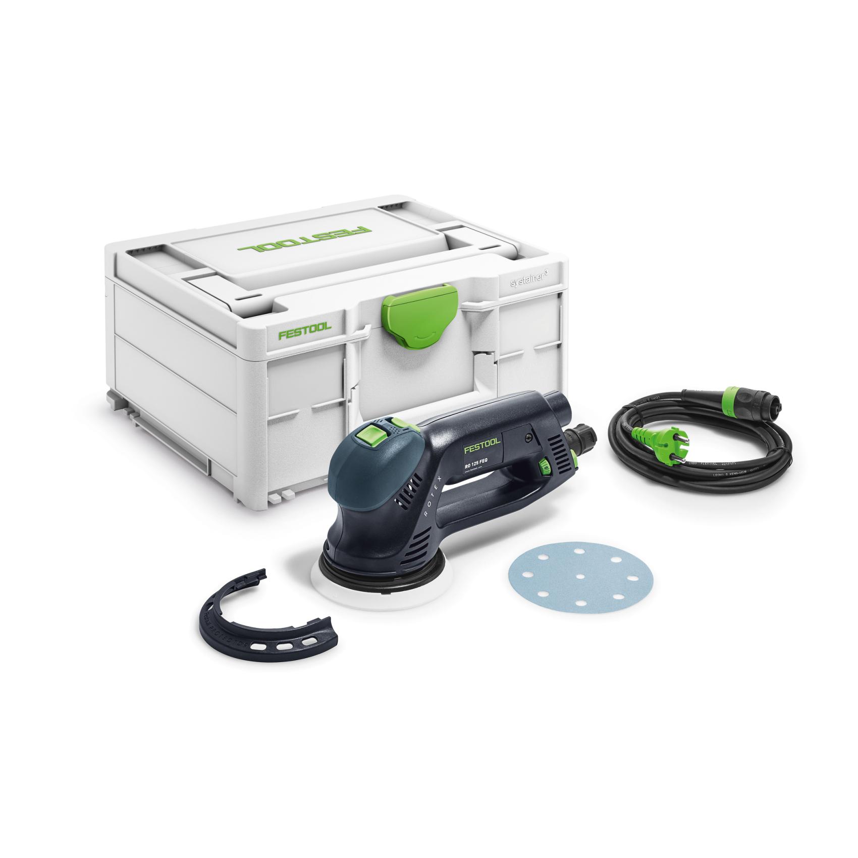 Kraftig slipverkan genom ROTEX- kurvbana. Perfekt ytkvalitet med excentersliprörelsen. FastFix. Enkelt och snabbt byte av slipplatta. Ergonomiskt grepp. Festool PROTECTOR: Skyddar slipplattan och arbetsstycket vid slipning nära kant. Liten och lätthanterlig för arbete med mindre påfrestningar. Huvudsakliga användningsområden: Bortslipning av gammal färg och lack. Bearbetning av trämaterial. Renoveringsarbeten som t ex slipning av trappsteg. För- och grovslipning av spackel, polering utan hologram, arbeten på lodräta ytor och slipning av skador på motorfordon. Levereras med slipplatta FastFix Ø 125 mm (medium) och Festool PROTECTOR i en Systainer SYS3 M 187.