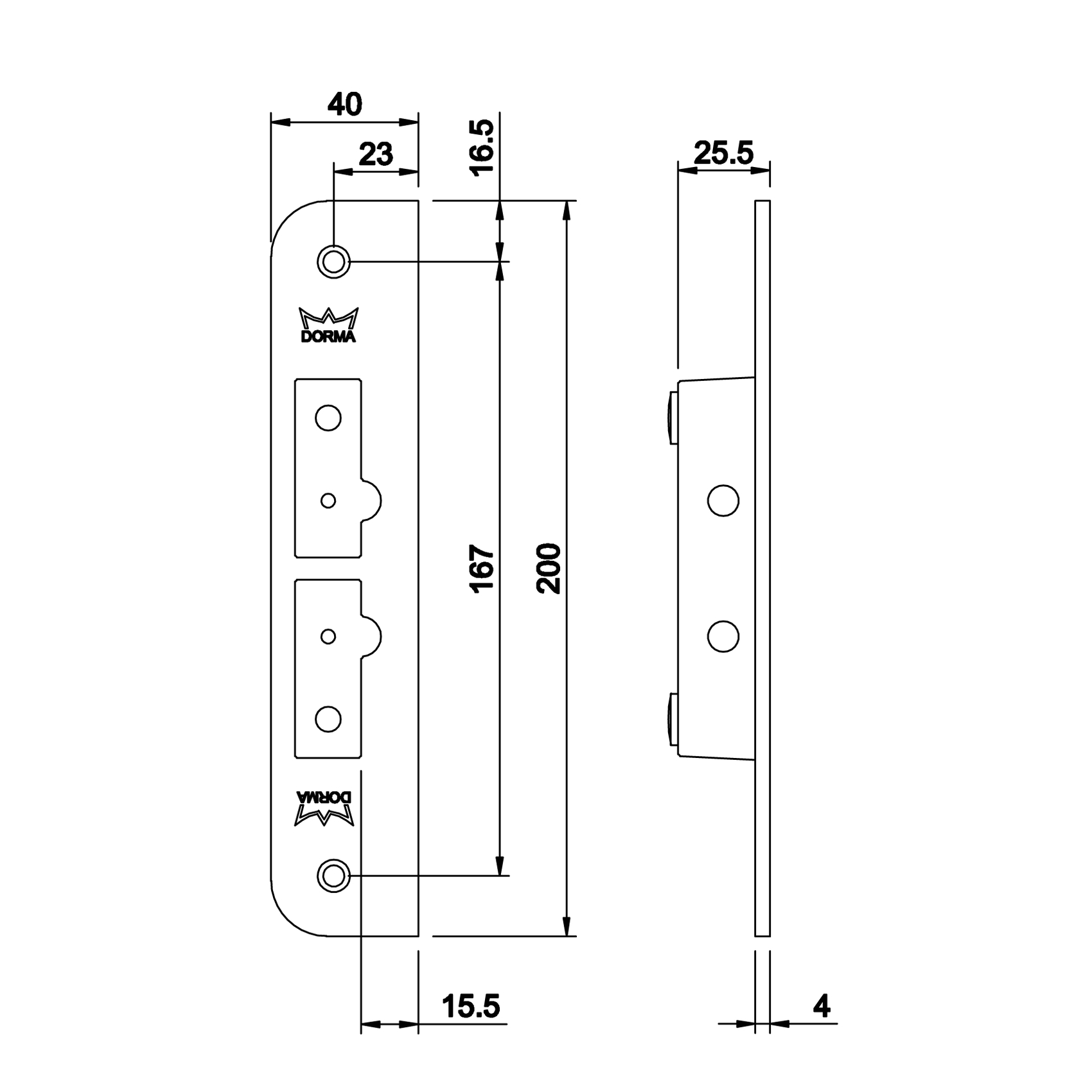 Slutbleck med kåpa för skydd mot angrepp och manipulation mot låsets kolvar. Ställbara stödskruvar för eliminering av svikt i karm. Monteras med snedställda skruvar för extra kraftig förankring i karm. Uppfyller krav enligt EN 12209 och Svensk Standard SS 3522, klass 3. Kan ingå i av försäkringsbolagen godkänd låsenhet.