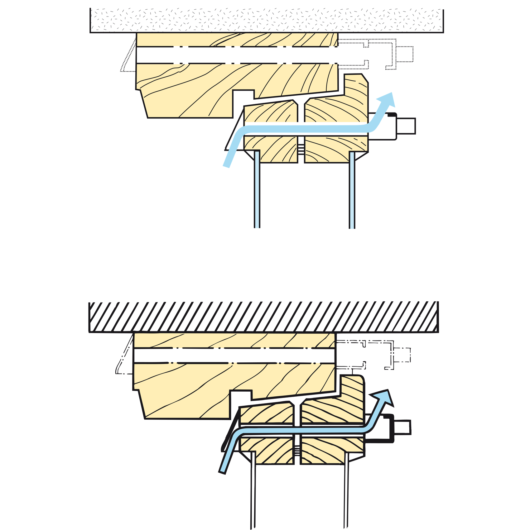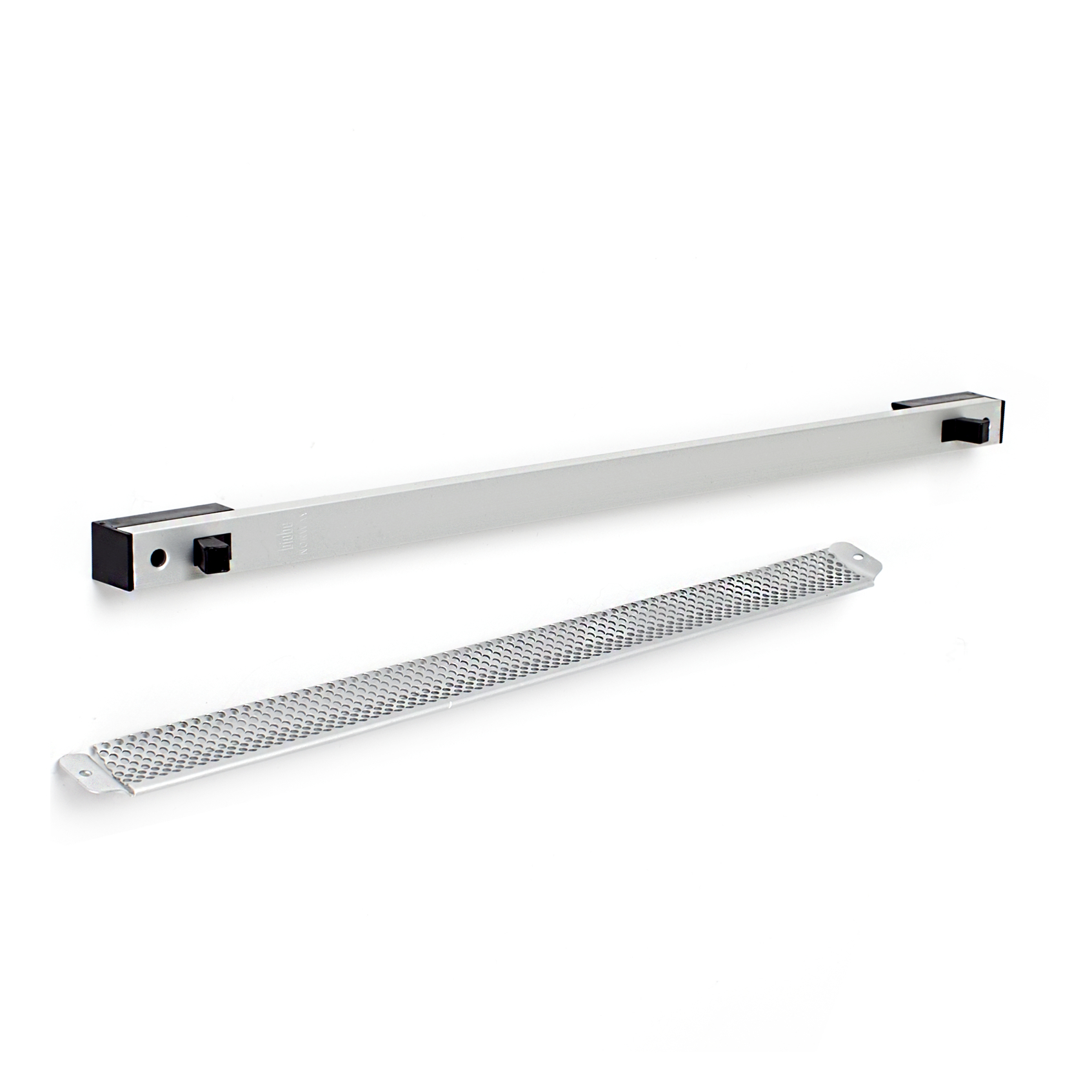 Spaltventil av aluminium. Borrmall av vitlackad aluminium som underlättar håltagning för spaltventiler.