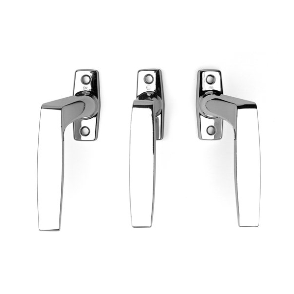 Spanjoletthandtag i förkromad zamak och sprint av 8 mm förzinkat fyrkantstål. Fönsterhandtaget passar för både fönster och altandörrar till exempel.