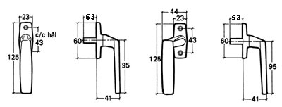 Handtaget har inbyggda spärrlägen för öppet och stängt som håller handtaget i rätt läge. Sprintlängd 53 mm. Bilden visar vänster, rak och höger. Skruv ingår.