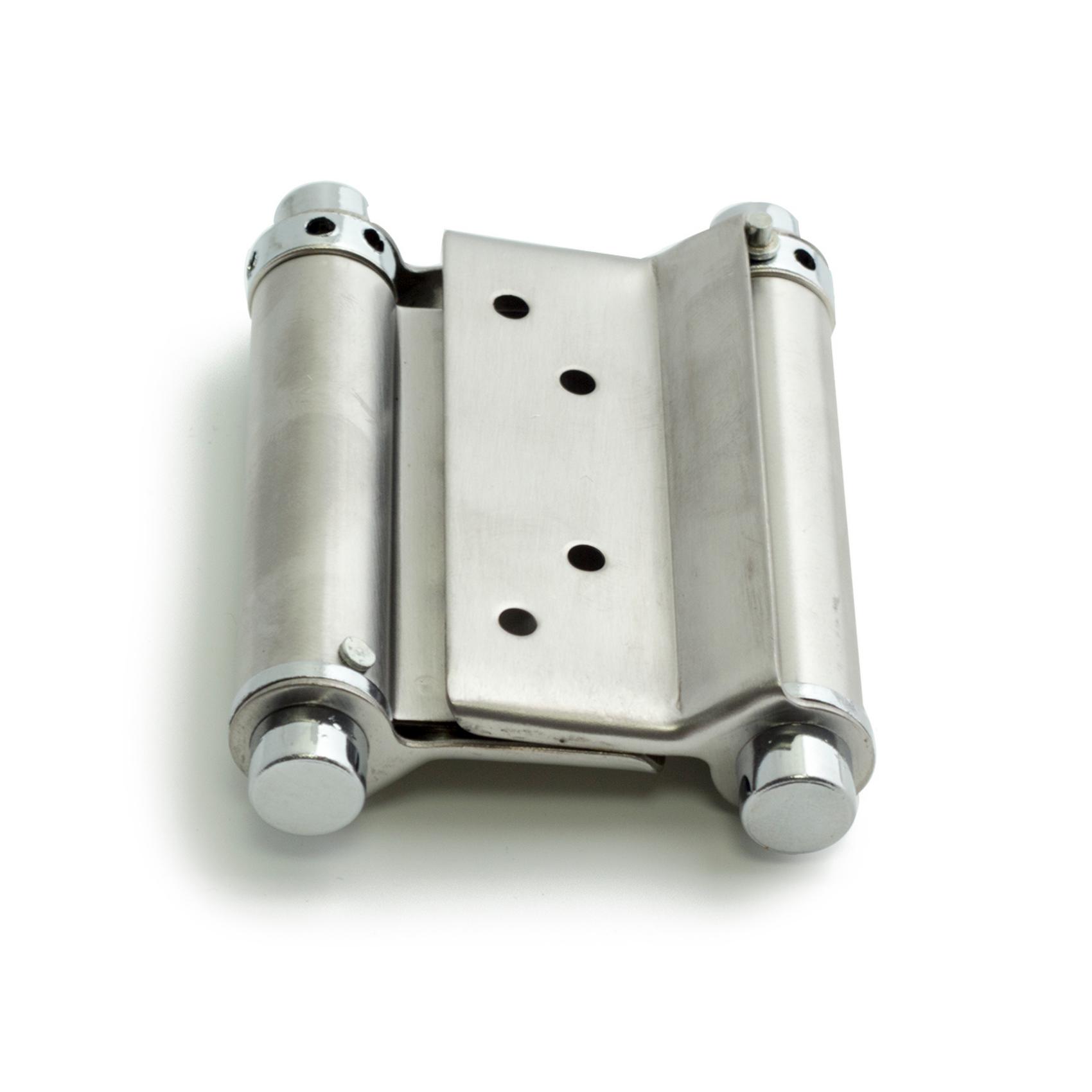 Dubbelverkande svängdörrsgångjärn av förnicklat stål. Stängningskraften är justerbar. Dörrtjocklek 18-25 mm och maximal dörrbredd 600 mm.