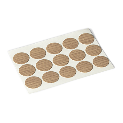 Självhäftande täckbrickor i standardmåtten 13 mm och 20 mm. Vid beställning av icke lagerlagt sortiment gäller MOQ: 13 mm - 10000 st och 20 mm - 9000 st
