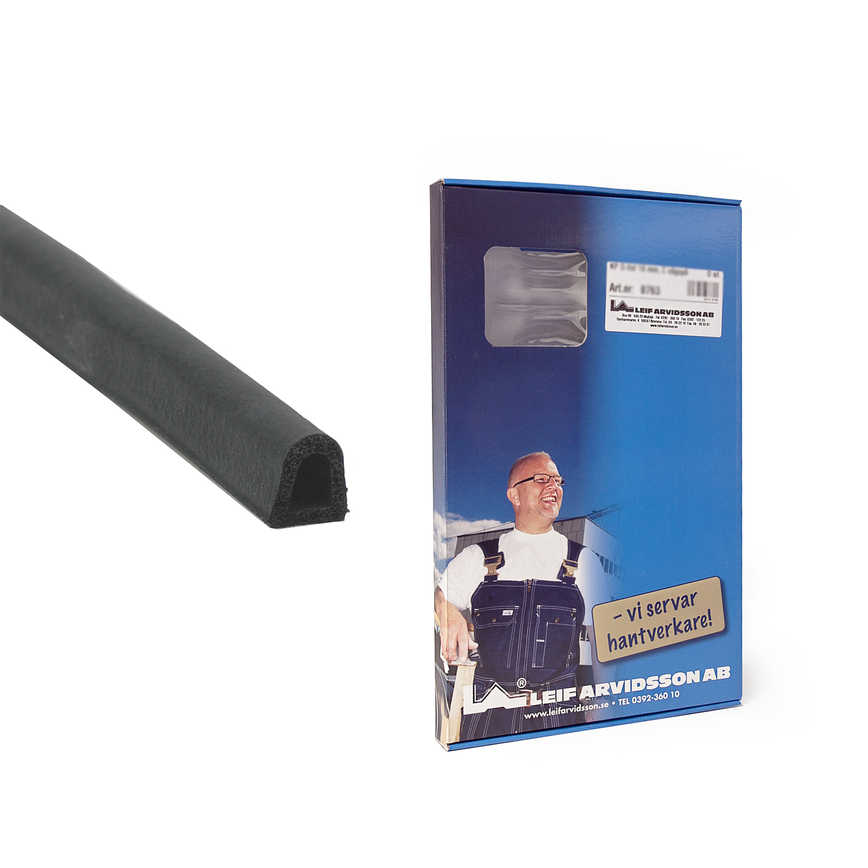 Tillverkad av EPDM cellgummi, med slutna celler och tunt skinn runt om för låg vattenabsorbtion. Listen säljs i förpackning om 8 m och går inte att beställa per meter.